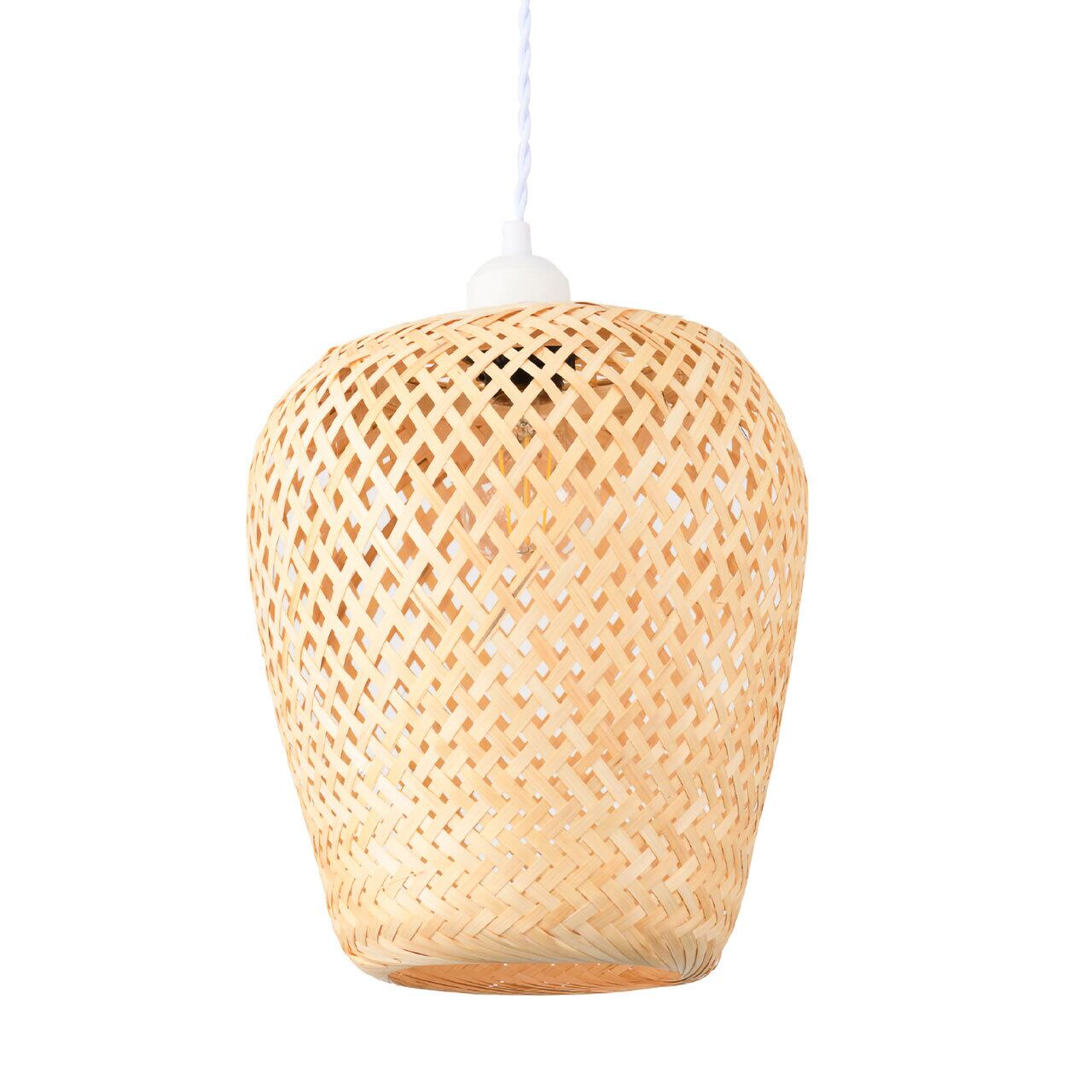 しなやかなバンブーの素材感を活かし、1本1本手作業で丁寧につくられています。バンブー素材は再生素材としても注目を浴びています。明かりをつけていても、つけなくても、ひとつのオブジェとして空間を彩ってくれます。温かみを感じ、光の表情がとても美しいバンブー素材は和室、北欧テイスト、ナチュラル、ボーホースタイルなど様々空間に調和します。引掛シーリングでどなたでも簡単に取付が可能です。コンセント部を隠すカップが付属するので、装着後も見た目がスッキリします。