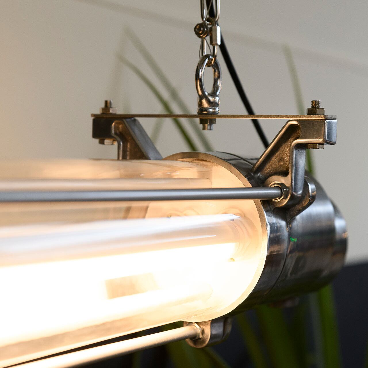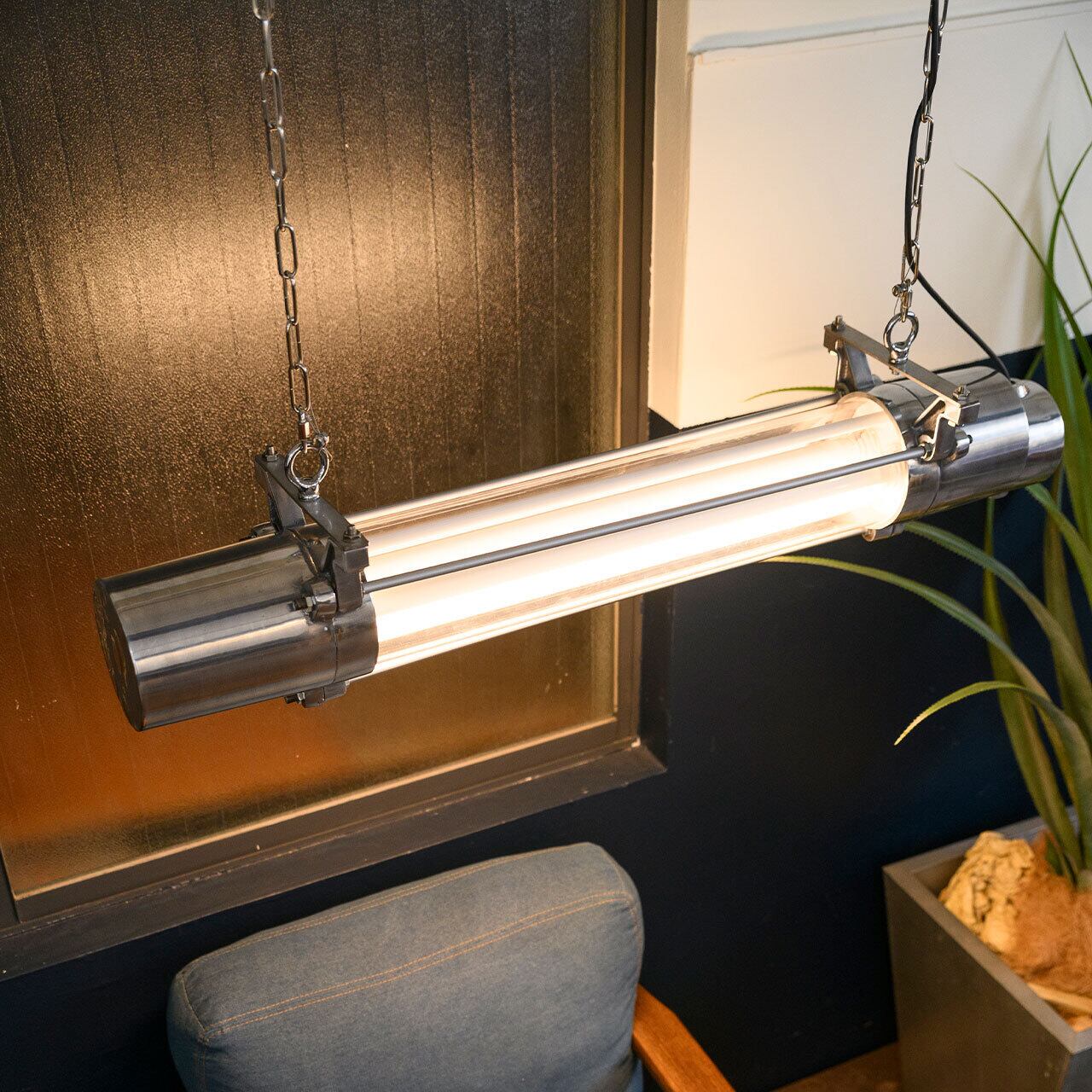 旧東ドイツ国有企業の廃墟に残る照明器具。Tube Lampシリーズは現代的なアレンジで、そのヴィンテージ照明の雰囲気をそのままに使いやすさを向上。唯一無二の存在感を放つかつての照明器具を現代照明としてリプロダクトしました。当時は防滴、防ガス、防塵ができるように設計されており爆発の影響を受けやすい研究所や化学プラントなどで使用されていました。ガラスだったシリンダーはポリカーボネートを使用し軽量化と耐久性を兼ね揃えて蘇りました。その唯一無二の存在感は、カフェやレストラン、アパレルショップなどの施設照明としておすすめです。LED蛍光灯、チェーン、フランジは日本製を使用。長寿命・省電力に加え、安心・安全性を重視。