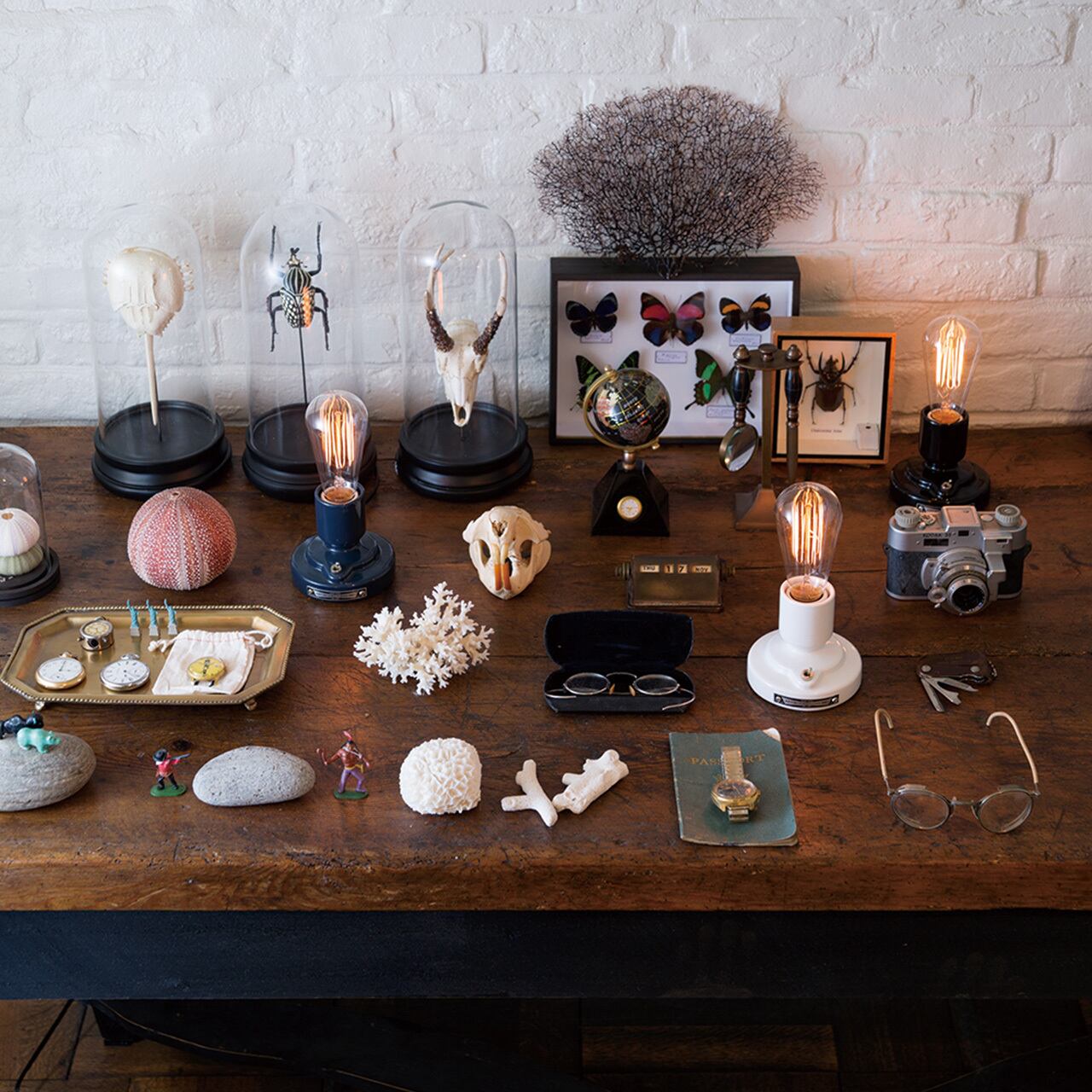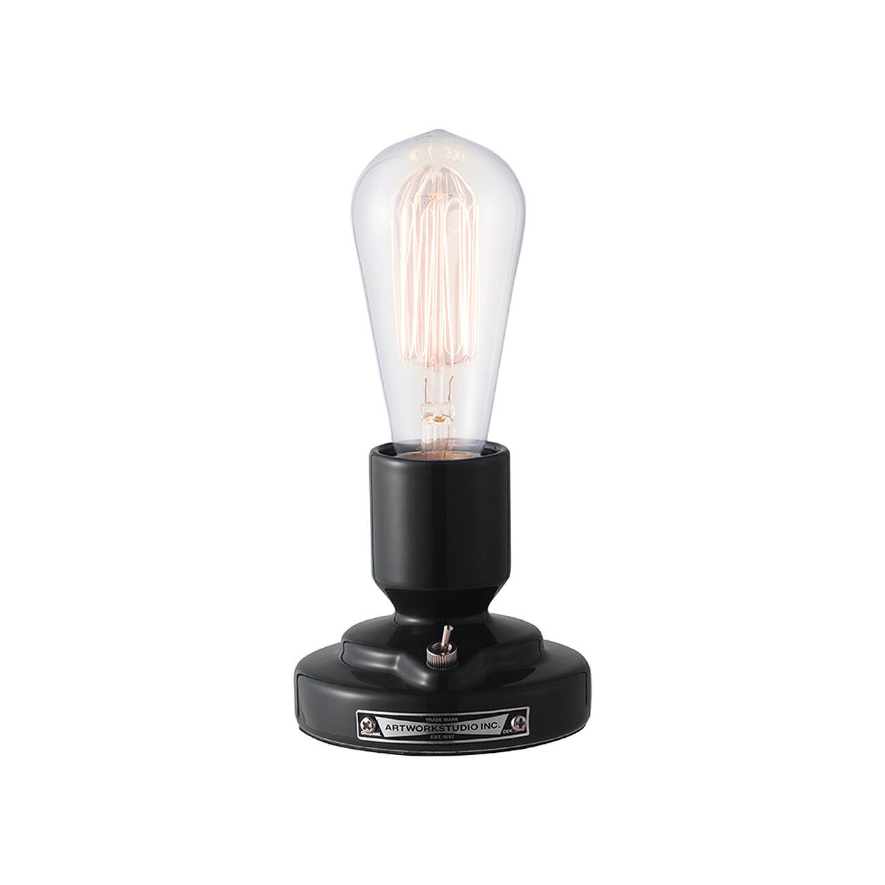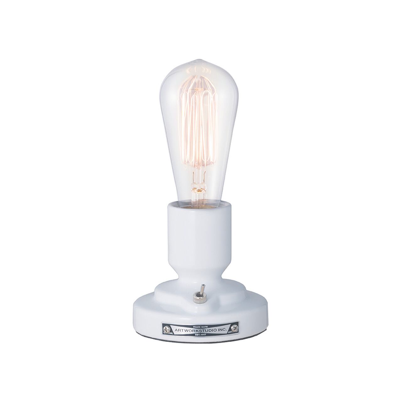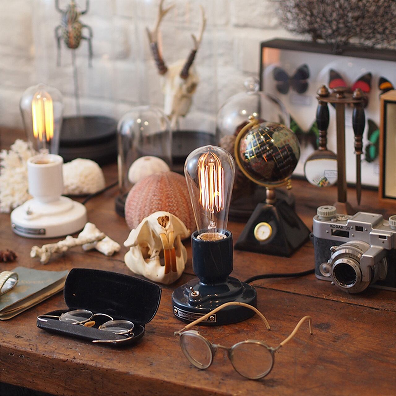 電球のフォルムが引き立つセラミック製の卓上ランプ。可能な限りミニマルにしたデザインの中に、トグルスイッチやロゴプレート等こだわりのビンテージテイストを詰め込みました。テーブルランプとしてはもちろん、玄関やベッドサイド等ちょっとした明かりが欲しい場所や、お部屋のアクセントや自慢のコレクション等を照らすディスプレイとしてもおすすめです。最大消費電力40W/スイッチ トグルスイッチ