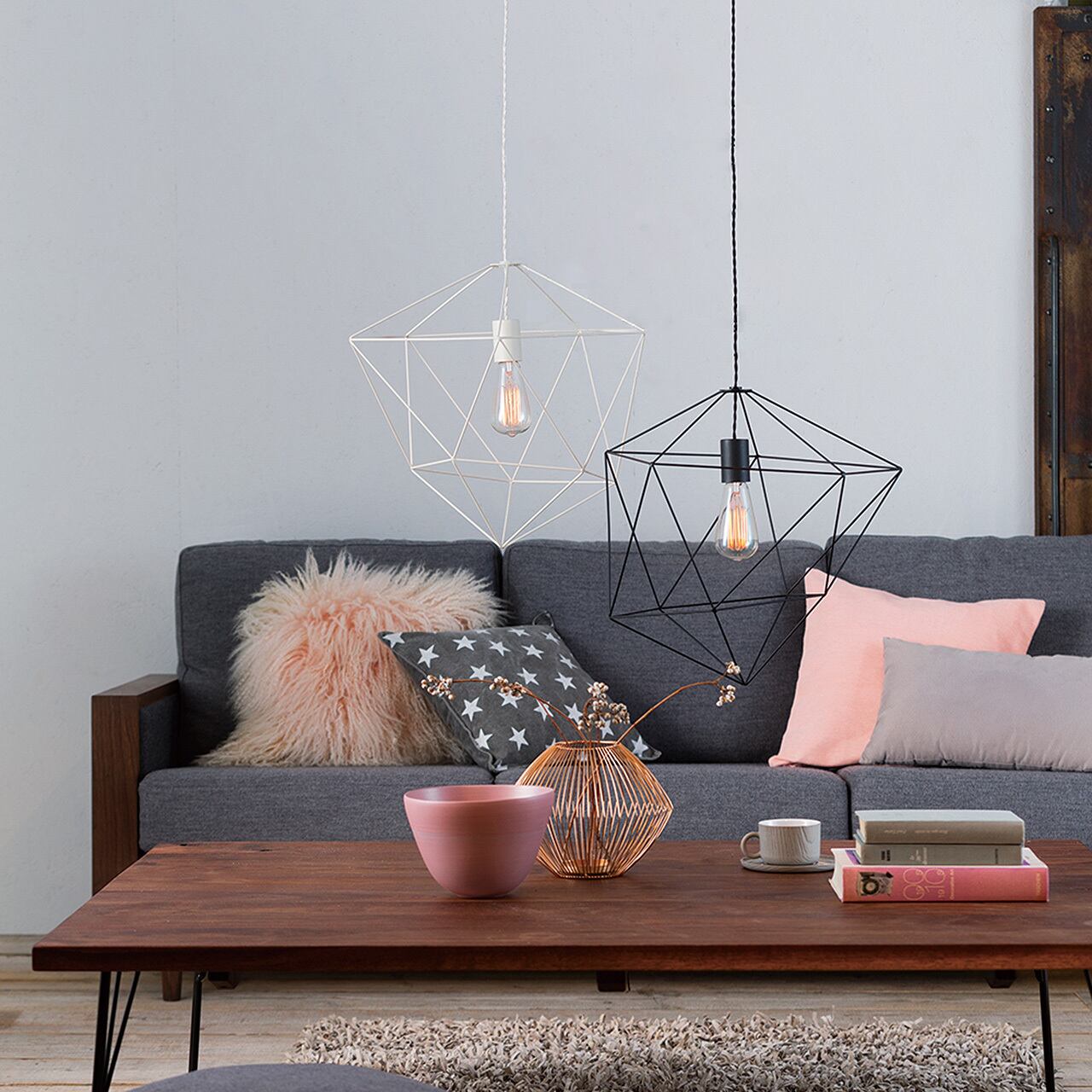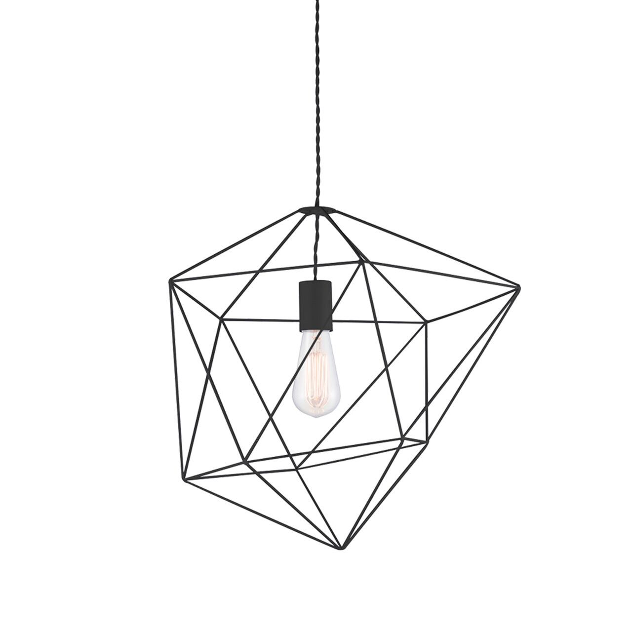 幾何学的なフレームが宙に浮いたような電球を囲む、モダンで前衛的なペンダントライト。一瞥すると大きく感じるところを、幾何学的に計算されたフレームのバランスや余白、抜け感のある軽やかな印象を生み、存在感がありながら圧迫感を生まない印象深い空間に仕上げます。