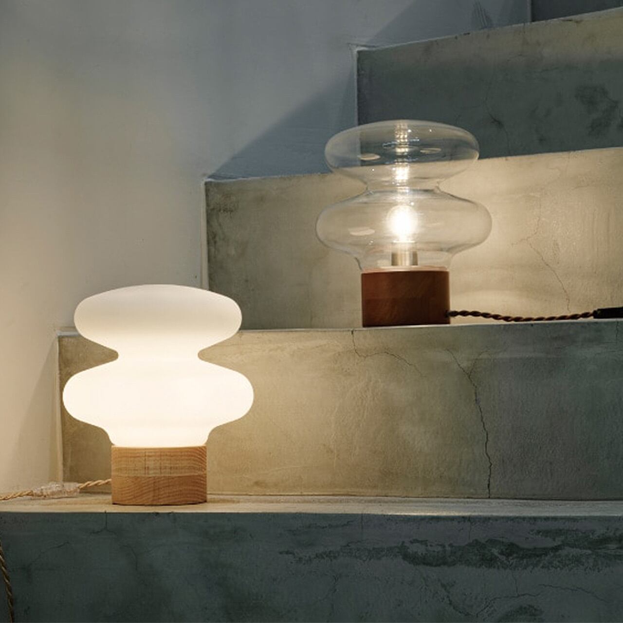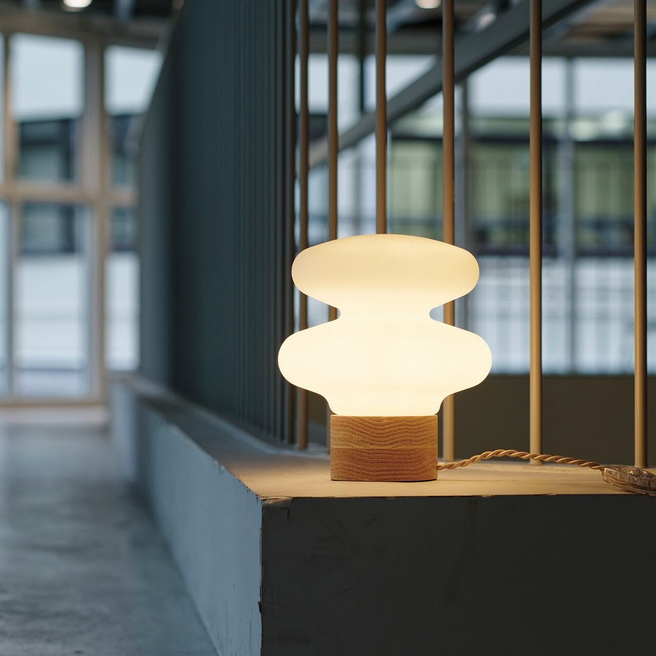 不思議なフォルムが目を引く、光るアートオブジェのようなデザインライト。深いくびれと緩急のあるカーブが描くユニークなシルエットは、ふわりとくゆるケムリのよう。木製ベースのナチュラルな風合いとふくよかな光が、ゆったりとした時間を包み込んでくれます。