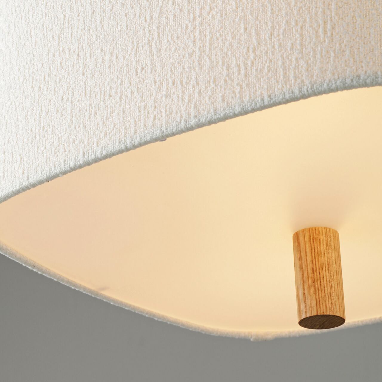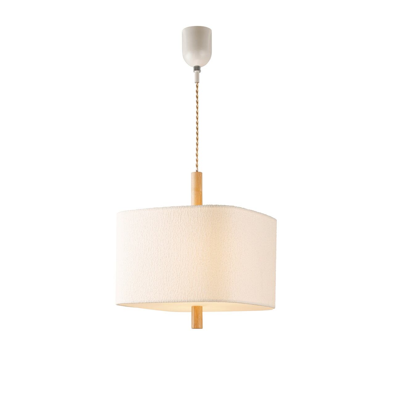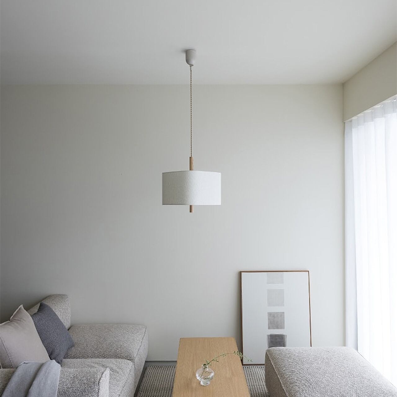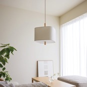 まるで毛布に包まれるような、やさしく穏やかな時間を灯すペンダントライト。角の丸いゆるやかなフォルムの表面には、トレンド感のあるブークレ生地を使用。もこもことした柔らかな質感は、つい触れてみたくなるような温もりを感じさせます。支柱にあしらったウッドパーツがナチュラルなアクセントに。