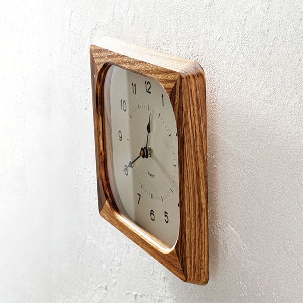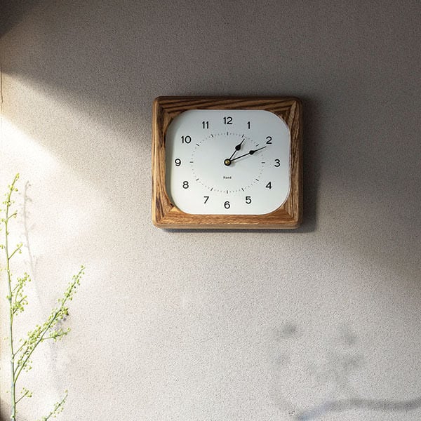 すべての角にエッジを効かせた特徴的なデザインは昔のブラウン管テレビからインスピレーションを得ました。ブラウン管独特の奥行きを落とし込み、すっきりとした文字盤デザインを合わせることで、レトロ感を残しつつ品格のある印象に。フレームにはコントラストのある大きな木目が特徴のゼブラウッドを採用しました。古道具やアンティークのような味わいがあり、懐かしさの中に、どこか新鮮さも感じます。