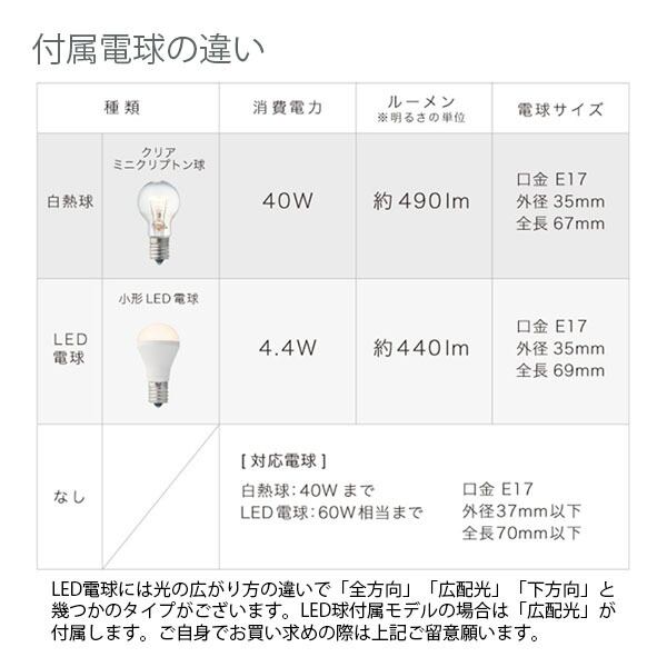 ■付属電球:LED電球: E17/40W相当 小形LED電球(電球色)×2 消費電力4.4W×2