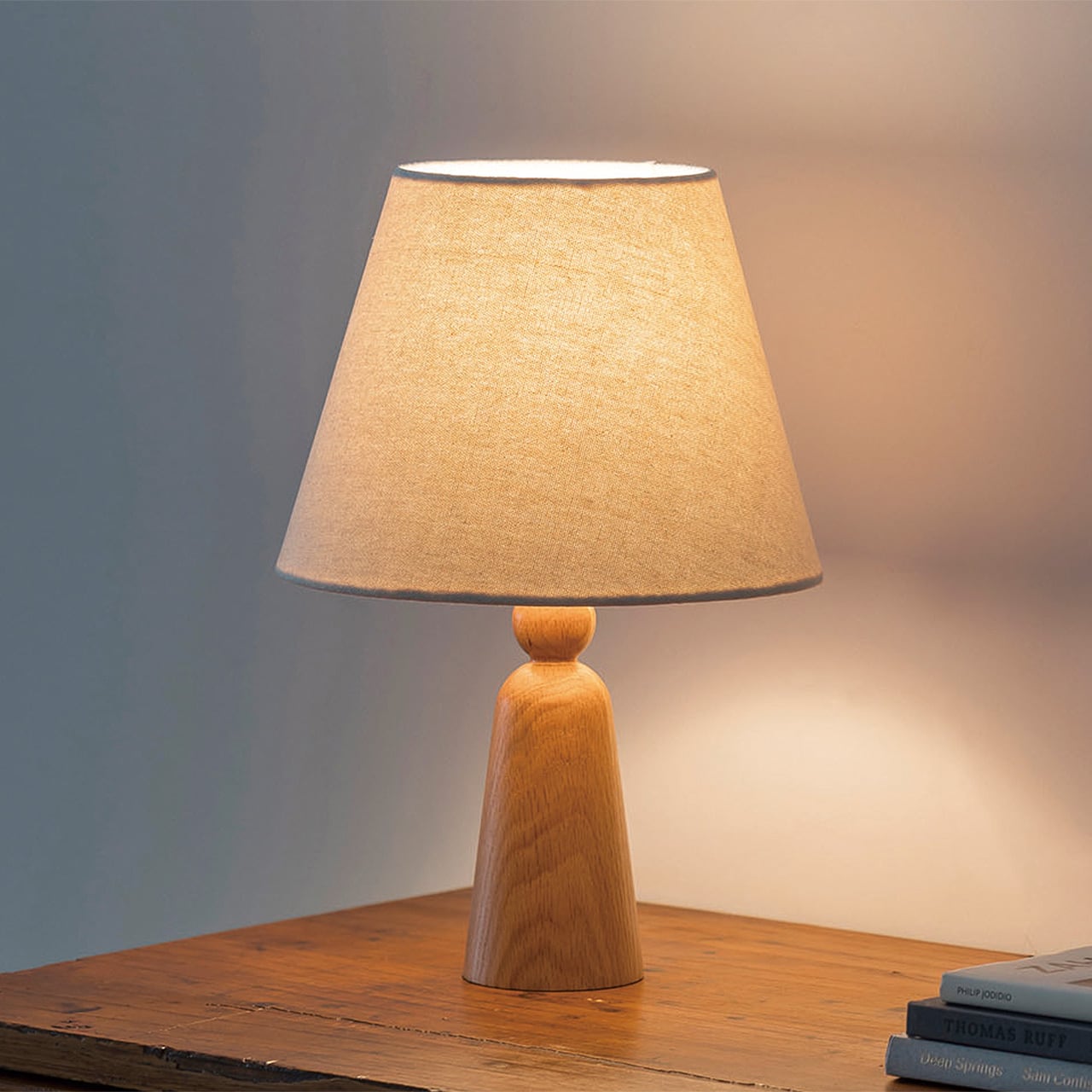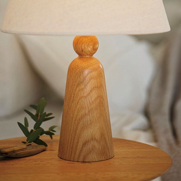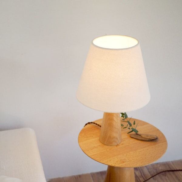 傘をさした人のようなシルエットが特徴的な、ナチュラルで柔らかく光る間接照明。削り出しの技術で仕上げられた一体形成の支柱に、大きめのファブリックセード合わせています。バウハウスのデザイン理念を踏襲し、使いやすさを重視した形状は、シンプルでありながらも親しみやすさを感じさせ、穏やかな印象を与えます。日々をゆったりと過ごすためのアイテムとして、静かな雰囲気を提供します。