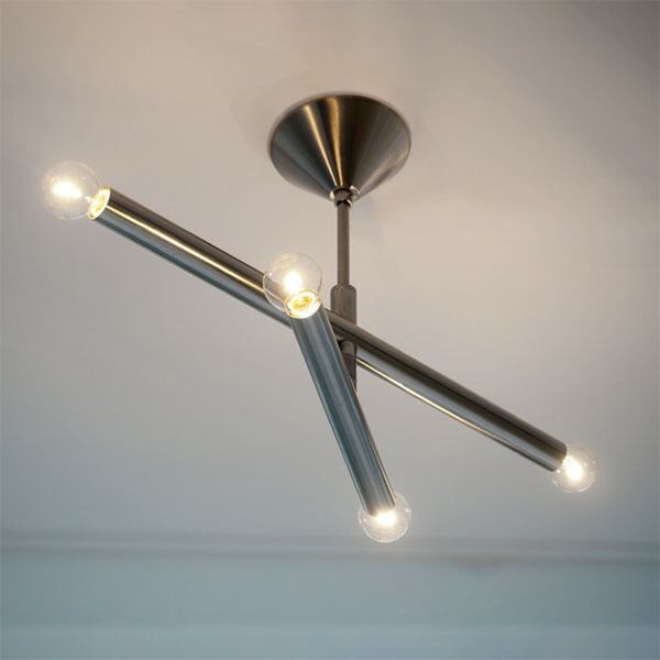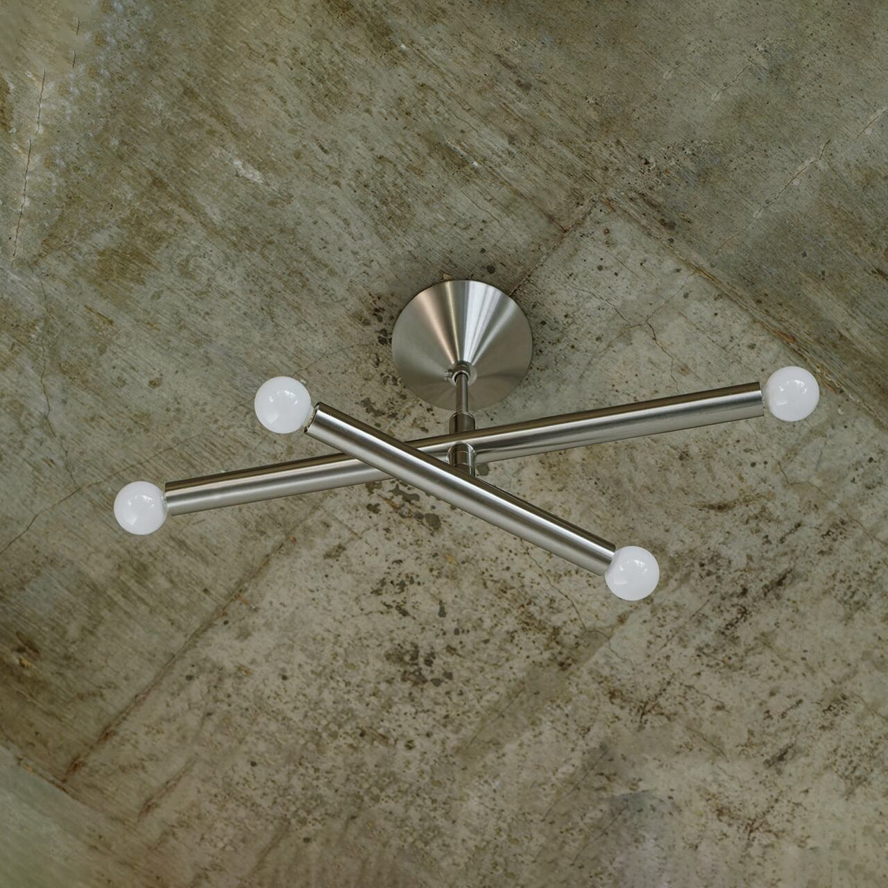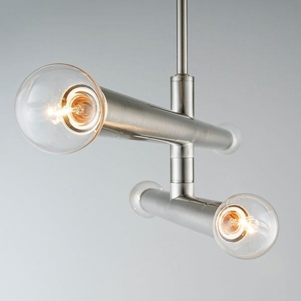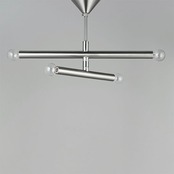 長短2本の円柱の交錯による洗練されたミニマルデザインを、艶やかなワントーンシルバーで。まっすぐに伸びた円柱から電球へとつながる潔いシルエットが、シンプルでありながら強い存在感を放ちます。アームの中にソケットが一体化され、直線的なデザインに光が沿うシンボリックな形状が魅力です。可動式アームを採用し、好みに合わせてシルエットを変えられる仕様にしています。コンパクトなサイズながら明るさを確保でき、取付けも容易で扱いやすい点も好印象。シルバーの中でもあたたかみのあるニッケルメッキは木やガラスなど他の素材とも馴染みやすいカラーです。