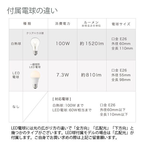 ■付属電球:LED電球: E26/60W相当 一般球形LED電球(電球色) 消費電力7.9W