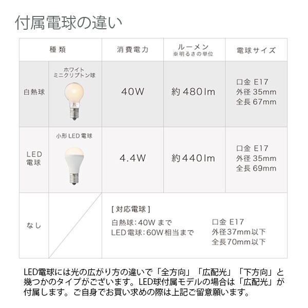 ■付属電球:LED電球: E17/40W相当 小形LED電球(電球色) 消費電力4.4W