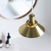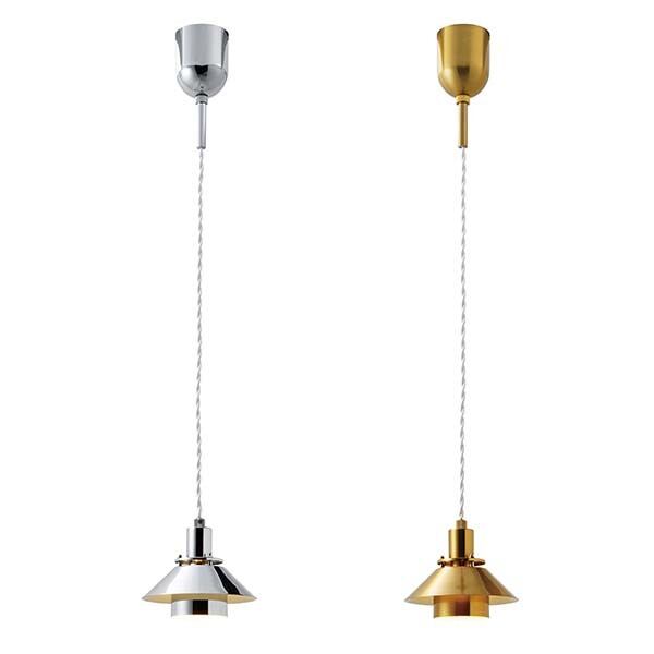 高級感のあるメタリックな質感をミニマルサイズで。シンプルでありながらもクラシカルで、直線的な構成がすっきりとした印象を与えます。直下は明るく照らしつつ、セードの隙間からも淡い光が漏れる王道のレイヤードスタイル。北欧ビンテージの雰囲気を漂わせながら、手に収まるほどの小さなサイズ感が空間を引き締めます。キッチンからパウダールームの水まわりまで。おしゃれカフェのようなイメージが膨らみます。