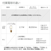 ■付属電球:LED電球: E17/25W ミニクリプトン形フィラメントLED電球(電球色) ※消費電力2.7W