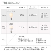 ■付属電球:LED電球: E26/60W相当 一般球形LED電球(電球色) ※消費電力7.9W ×1