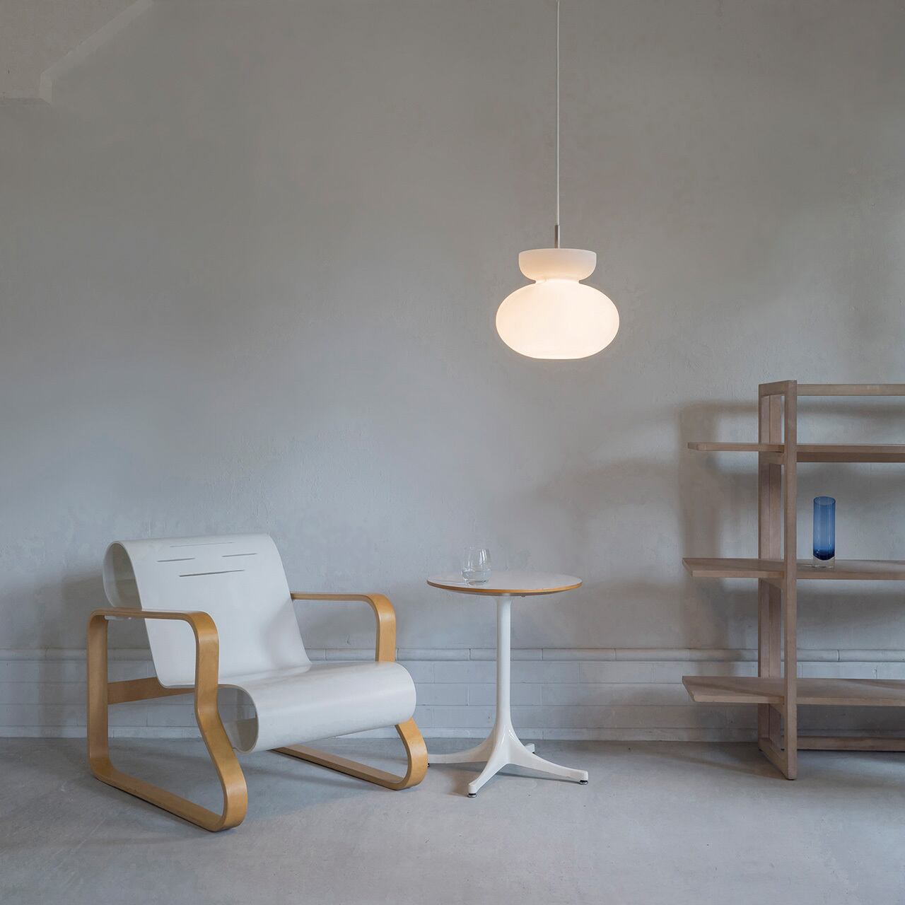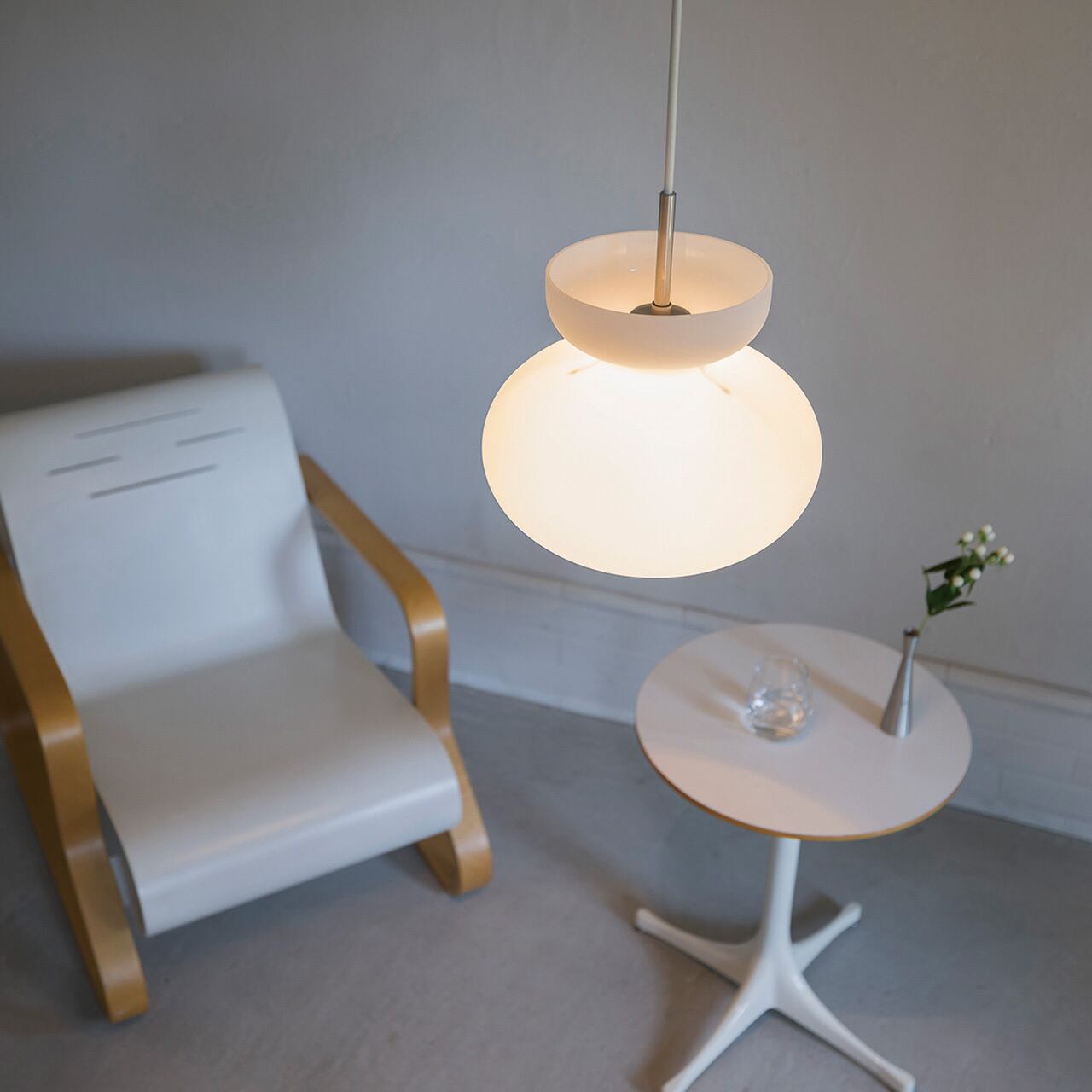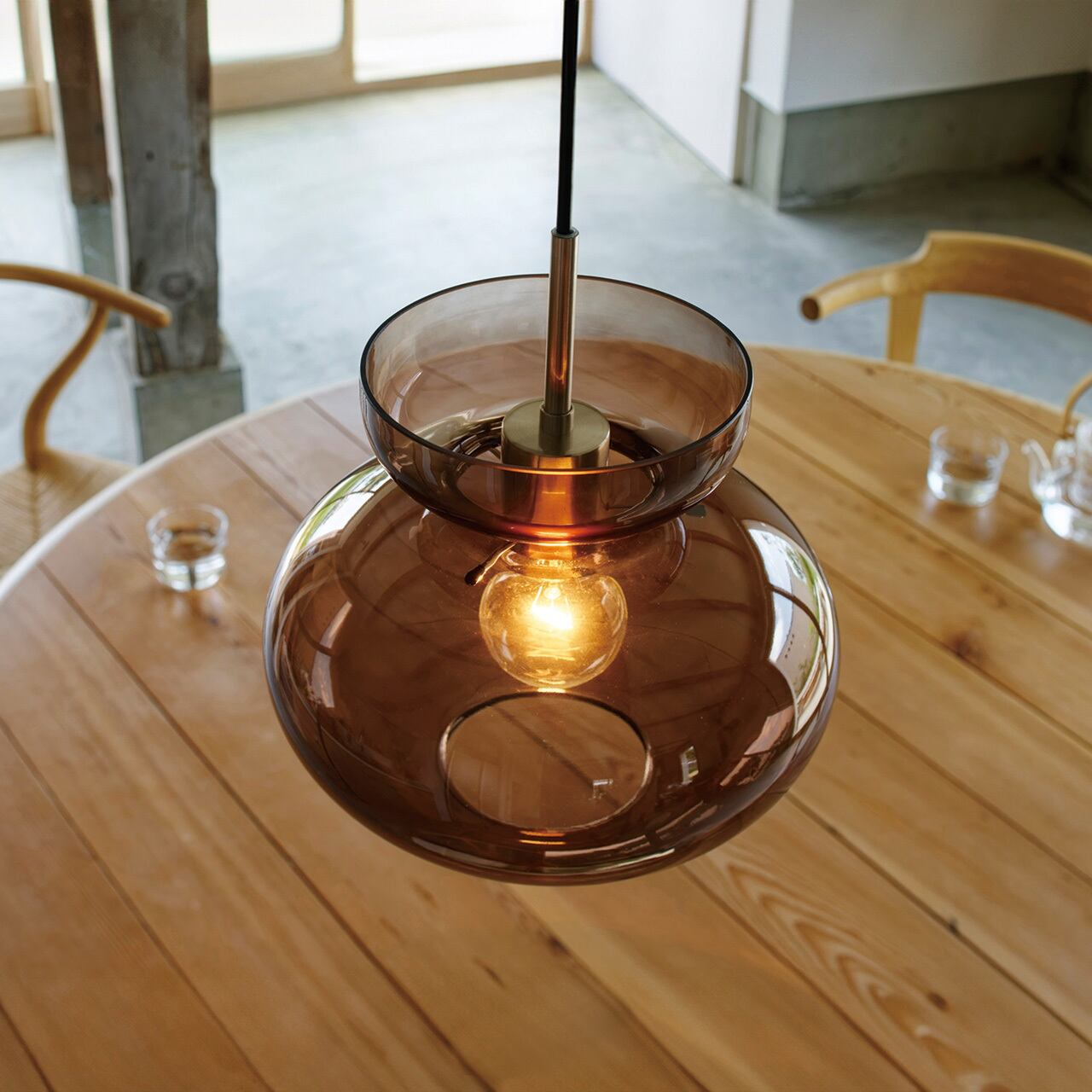 ふくよかなシルエットが不思議な浮遊感を漂わせるデザイン。たおやかな膨らみと、それを引き立てるくびれをシームレスに表現したガラスセードは対照的な2色をご用意しました。深みのあるブラウンは落ち着いたカラーリングと透明感が共存した、ミッドセンチュリー期を思わせる仕上がりです。清楚感のあるホワイトは電球の光が輪郭をなぞるように、じんわりと広がります。どちらもソケットはヘアライン仕上げのシルバーを合わせました。