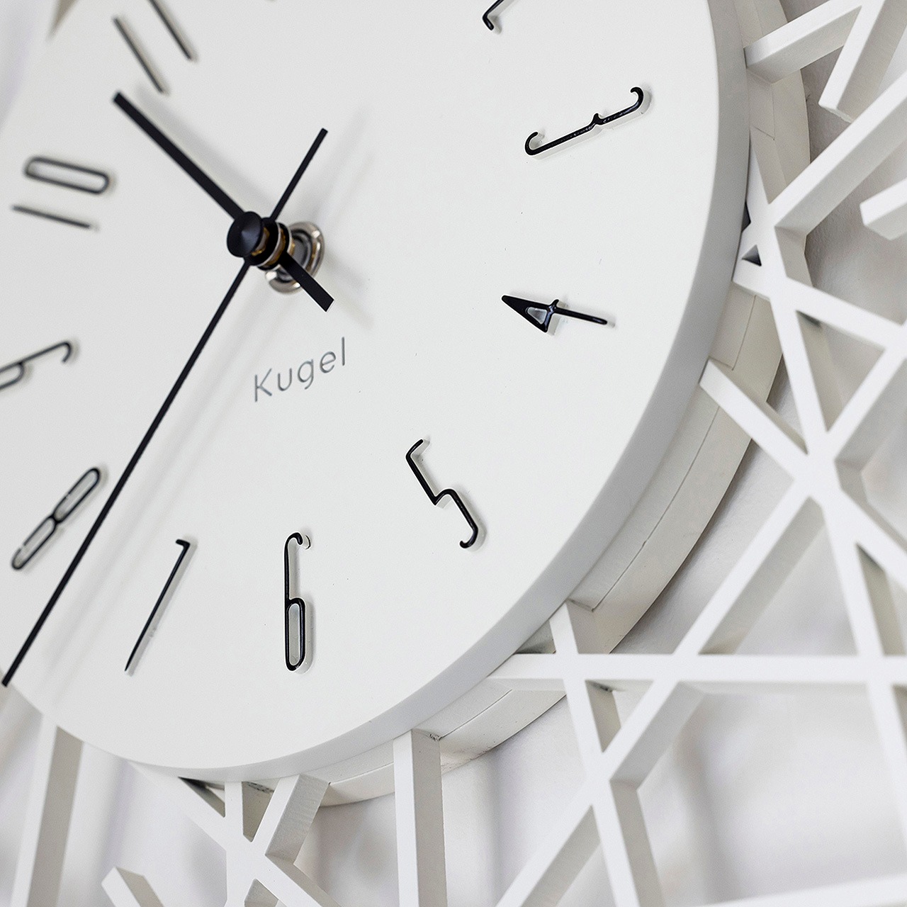 小枝をかき集めたようなデザインが特徴のレリーフ型ウォールクロック。平面的な構造ながら、影が壁面に映し出されることで奥行きが生まれ、時間の経過とともに移り変わる美しい景色を楽しむことができます。雪の結晶を連想させる真っ白なカラーリングでモダンなイメージに仕上げました。ウォールアートのような存在感で上質なムードを演出します。