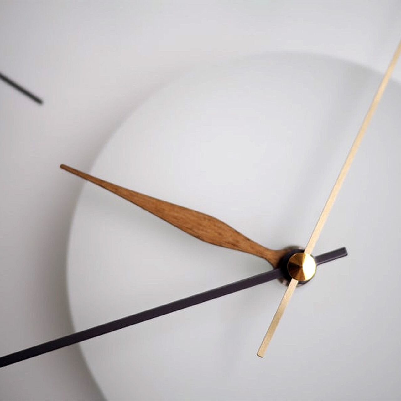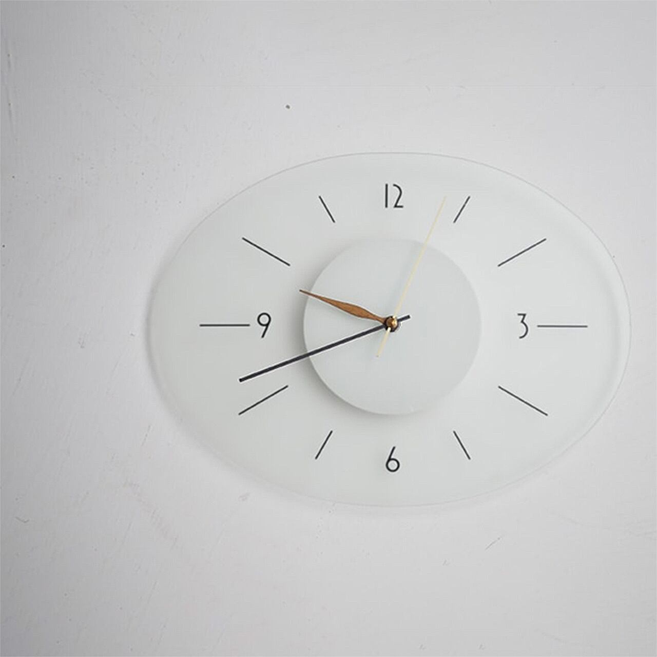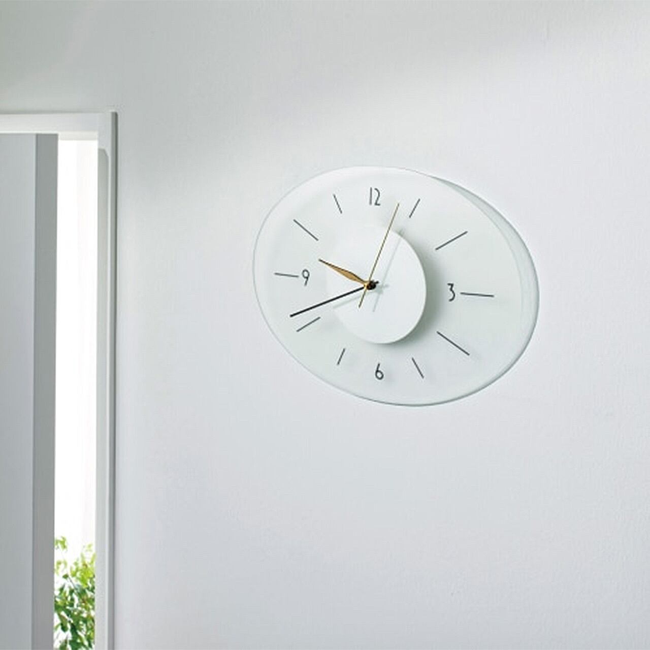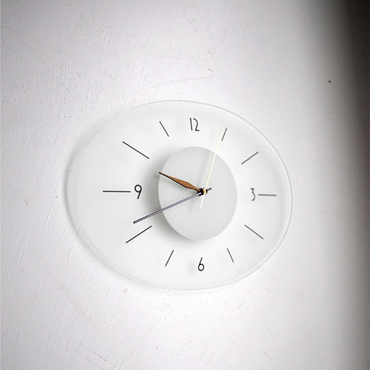 向こう側がぼんやりと透けて見えるフロストガラスを文字盤にした上品なデザイン。霞がかったような半透明の文字盤が柔らかさを演出し、お部屋にそっと馴染みます。短針には木を採用し、ナチュラルなエッセンスを。膨らみのあるオーバルフォルムが優しく穏やかな陰影を作りだします。