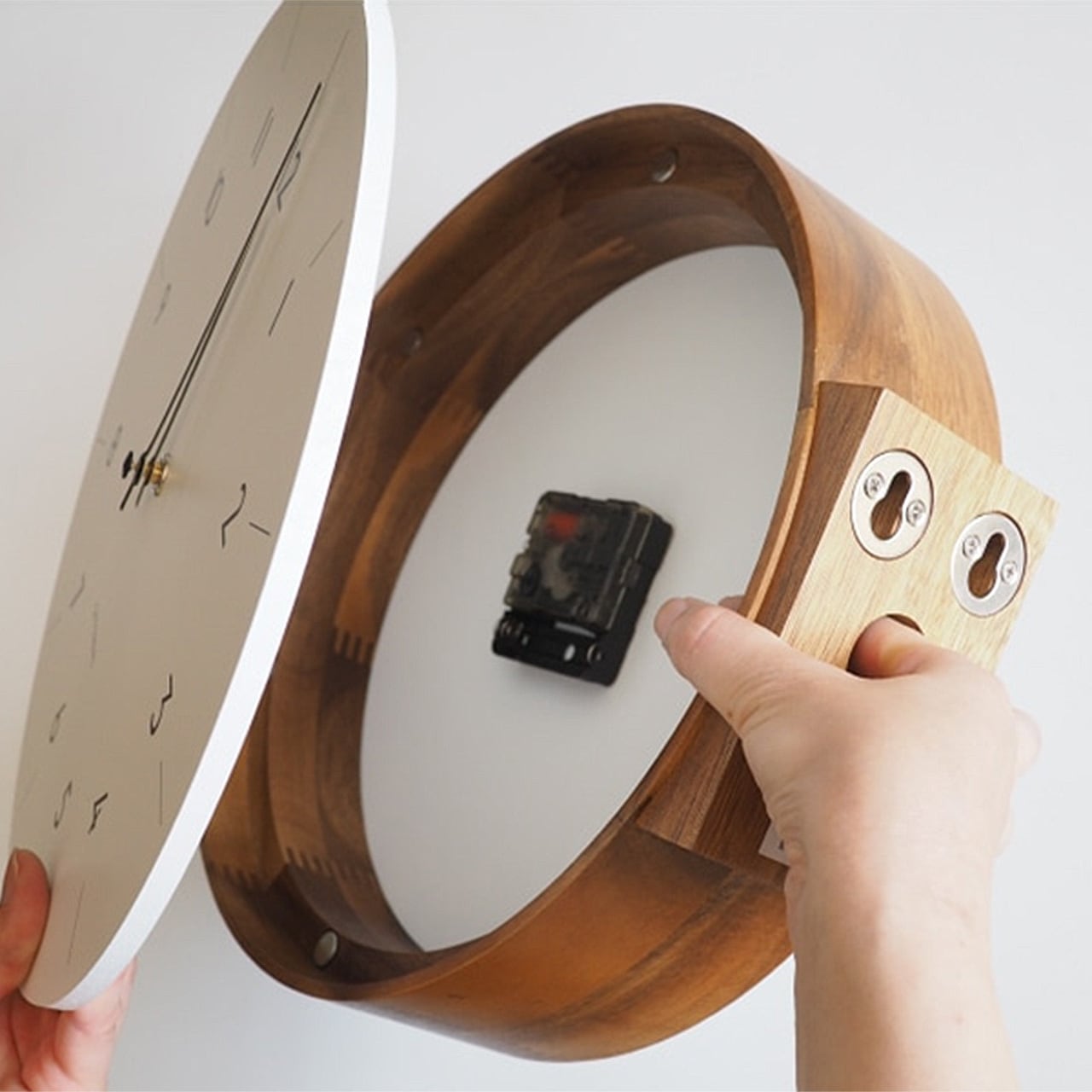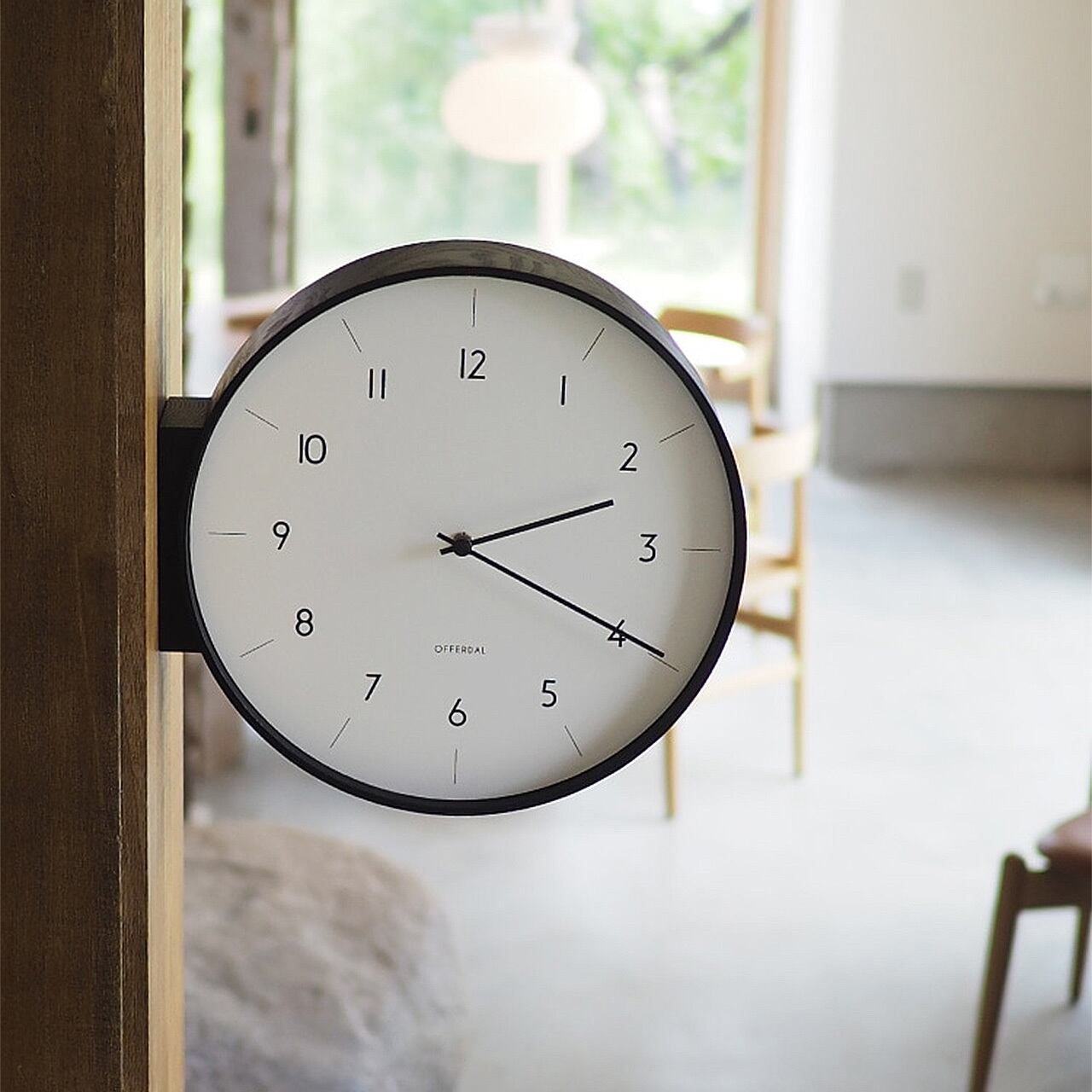 「暮らしに馴染む」をコンセプトにスタートした両面時計がようやく完成しました。木目の美しさが特徴のウッドフレームからは素材のぬくもりだけでなく、職人の手仕事が見て、触れて、感じられます。視認性を高めるため、文字盤デザインを広くしています。程よい存在感で空間にフィットするサイズ感にもこだわりました。
