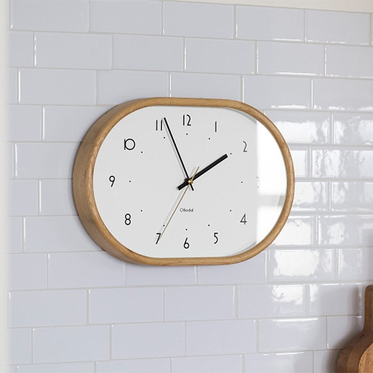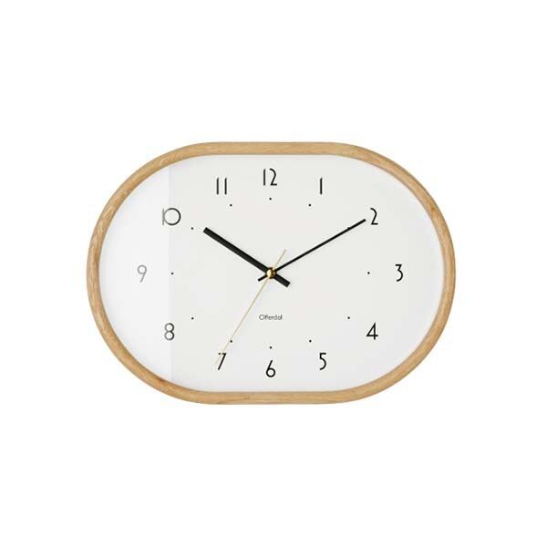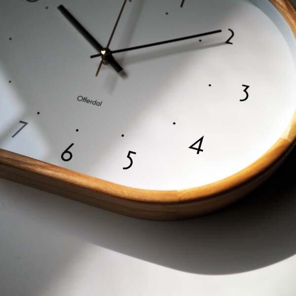 スタンダードなエレメントも、親しみやすいオーバルシェイプやレトロポップな数字と組み合わせることで、こだわりを感じさせるルックスに。角に丸みを持たせたウッドフレームが家具のような装いを見せます。明るく、清潔感のあるデザインにはディテールへのこだわりが欠かせません。人気の北欧テイストやナチュラルなコーディネートに合わせやすいデザインです。