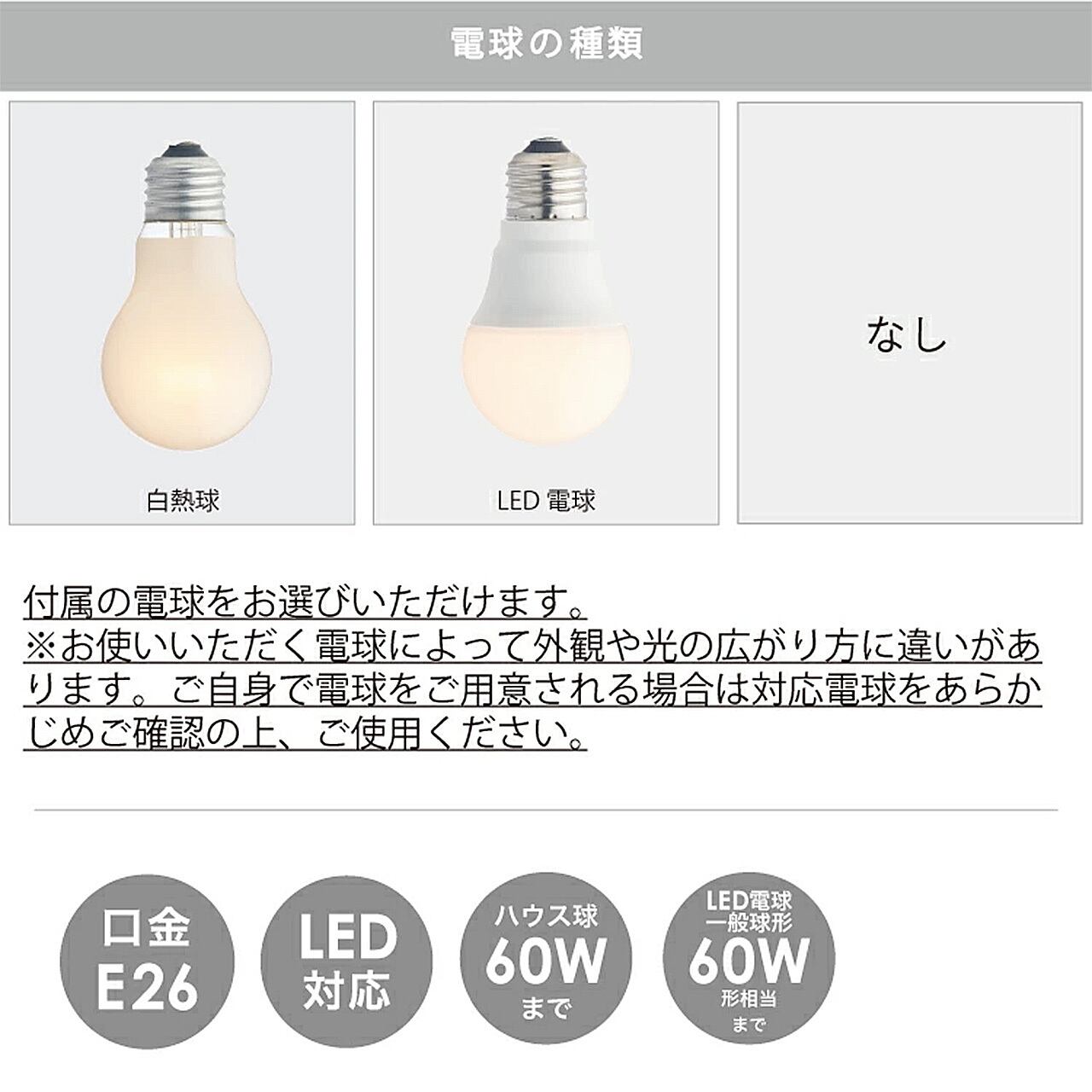 ■付属電球:LED電球: E26/60W相当 一般球形LED電球(電球色) ※消費電力7.9W