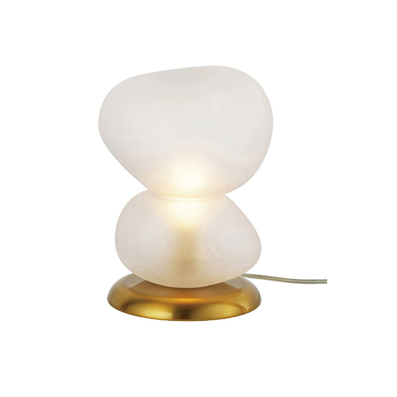 不規則で有機的なシルエットがアブストラクトアートを思わせるインテリア性の高いテーブルライト。アシンメトリーな二つのフォルムを半透明のフロストガラスで表現しています。ふわりとした明かりがかすかな輪郭を浮かび上がらせ、癒しのひとときを演出します。