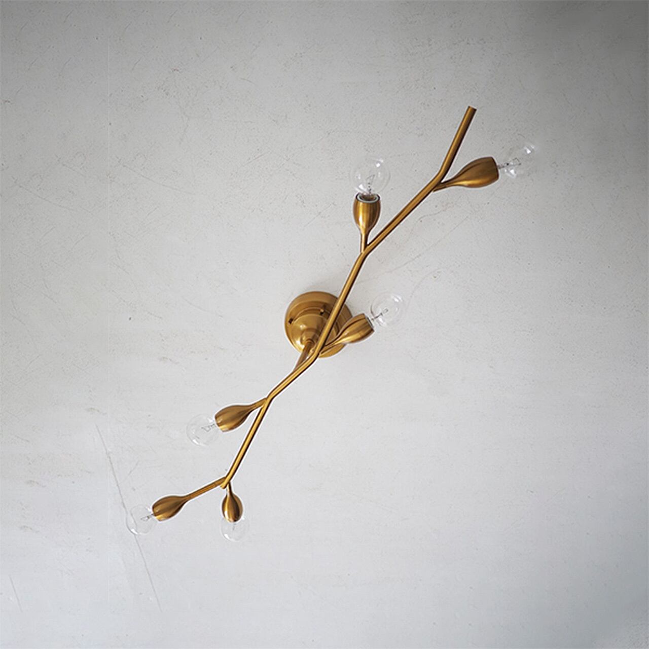 広がる枝につぼみが膨らむボタニカルなインスピレーションから生まれたデザイン。つぼみに見立てた電球と一体感をもたせたソケットデザインや、左右非対称の不規則なフォルムなど、自然の息吹が感じられる造形にこだわりました。天井に映えるゴールドカラーが空間に華を添えます。