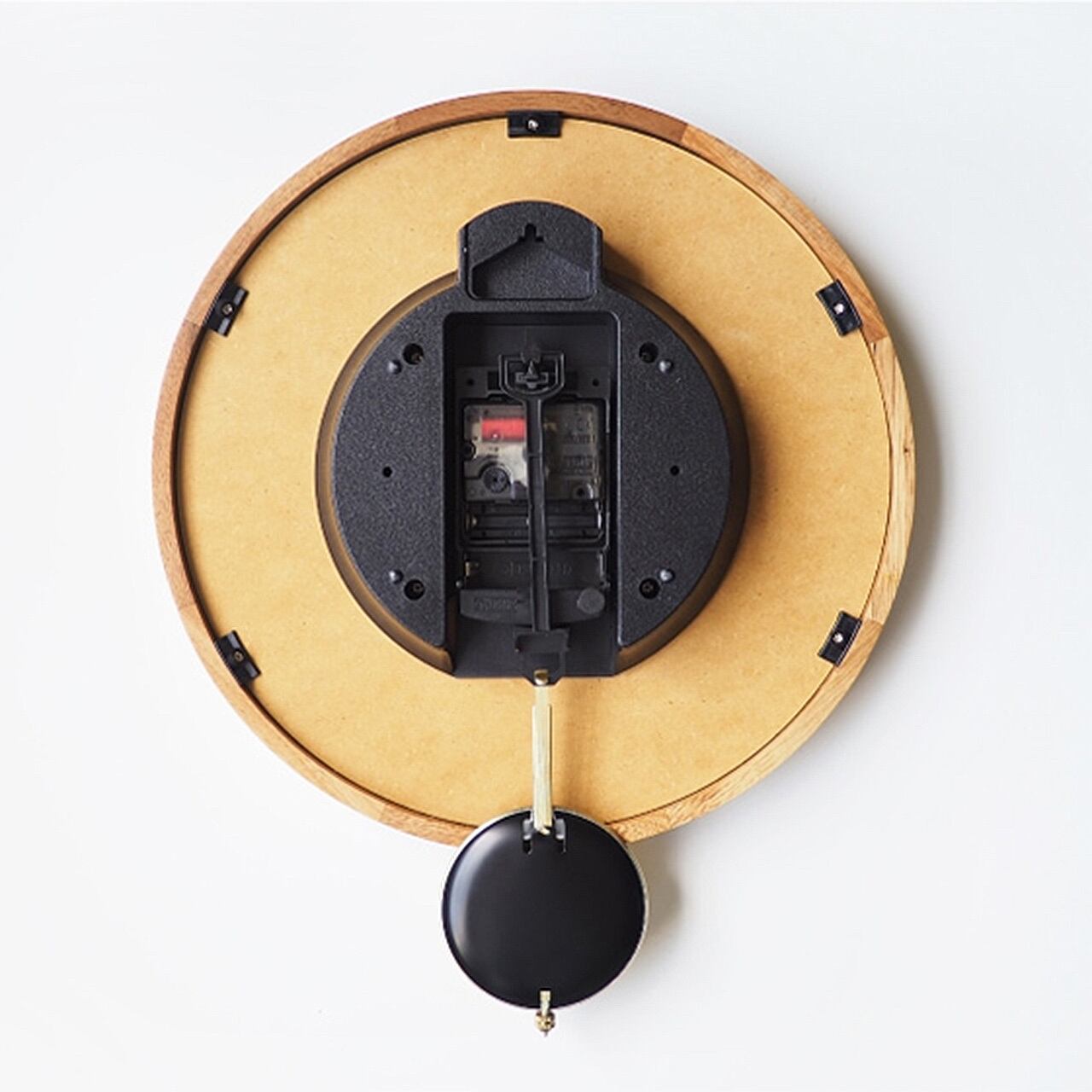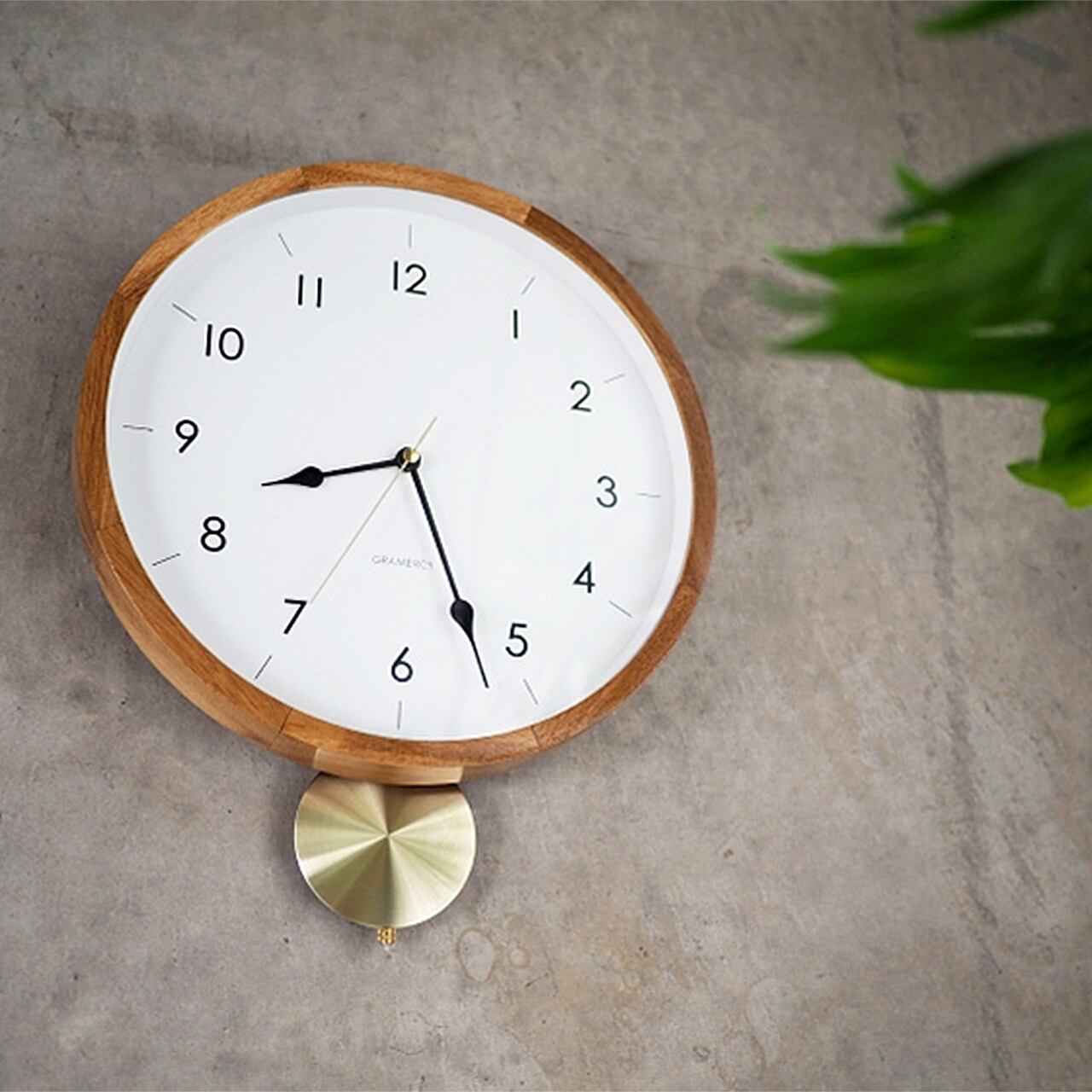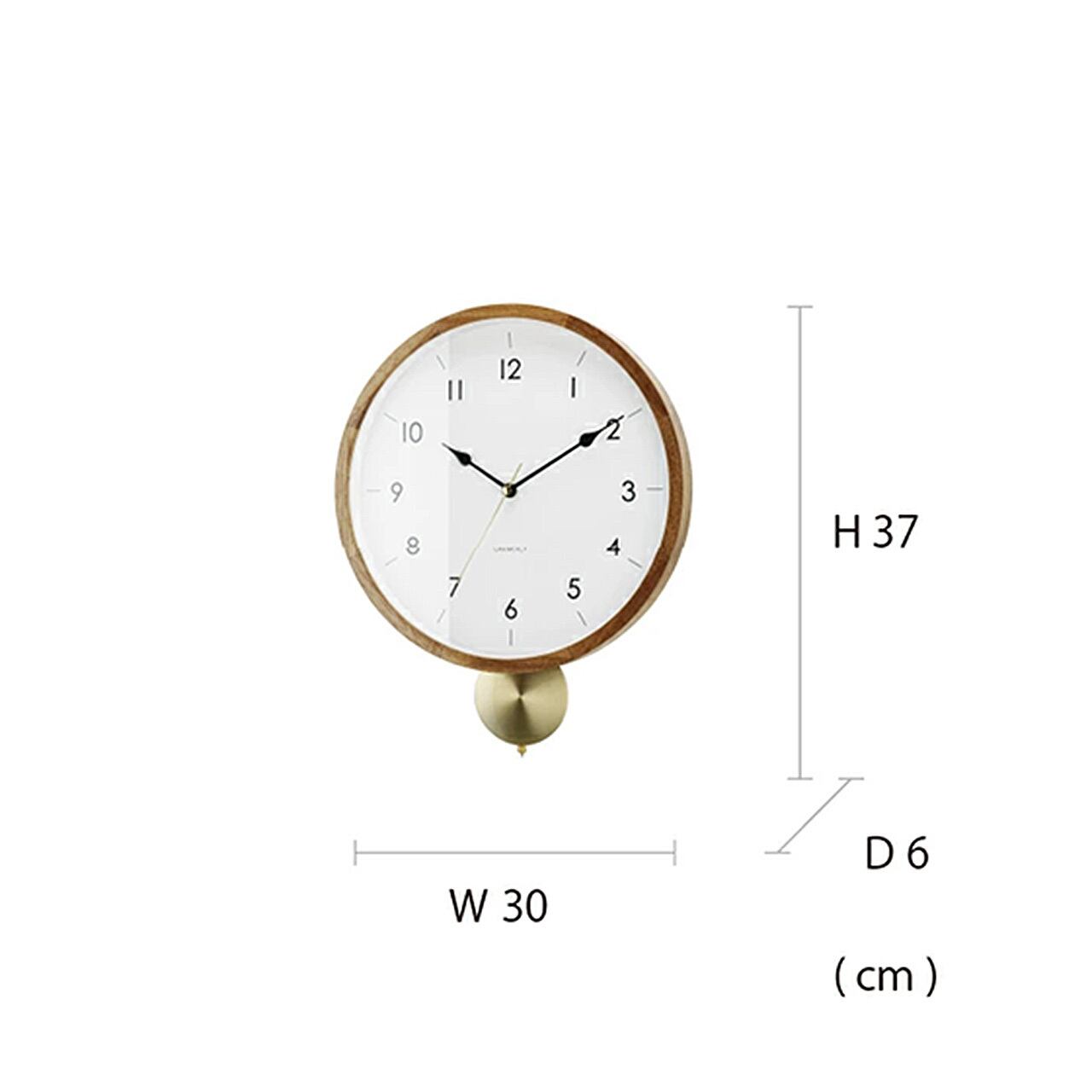 ゴールドの振り子が穏やかな時を刻む、クラシカルなウォールクロック。シンプルな文字盤をあたたかみのあるウッドフレームが囲む、品格を感じられるルックスです。ウッドフレームは美しい木目が特徴的でギザギザの継ぎ目にクラフトテイストを感じます。一方でシンプルにまとめた文字盤には繊細なデザインの針を合わせました。ゴールドの輝きがウッドフレームによく合う丸いアルミ素材の振り子は静かに時を刻むように左右に揺れます。素材のコントラストとシンプルな文字盤の組み合わせが、落ち着いた空間に寄り添います。