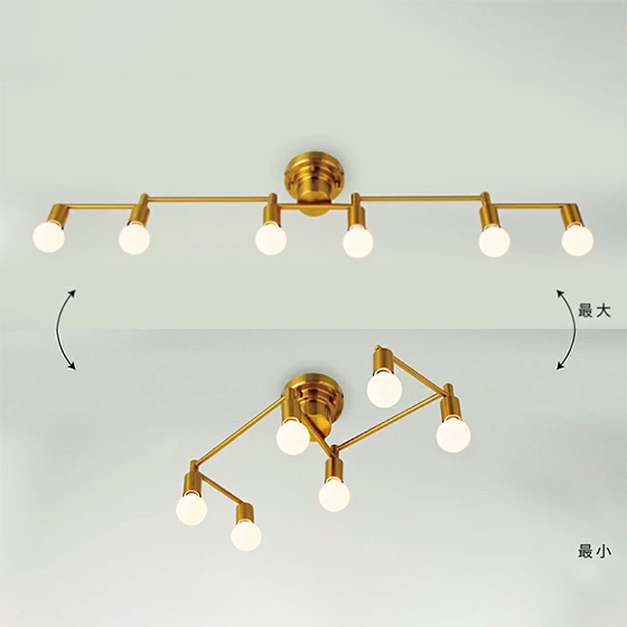 夜空に瞬く星座にインスパイアされデザインされたシーリングライト。シーンや気分に合わせてスタイリングをお楽しみいただけます。アームとソケットは極力シンプルに。ミニマルなシルエットはスタイリングの邪魔をしません。4本の可動アームにより、電球の位置やシルエットをフレキシブルにスタイリングができます。コンパクトなサイズにもできるので、お部屋の広さや形状に合わせたスタイリングが可能です。ボディーは高級感のあるゴールドカラーで統一しました。使用する電球の種類によって趣の異なる佇まいを見せます。シーリングライトは天井近くに設置するので、圧迫感のないシンプルなデザインは空間を広く感じられる視覚効果が得られます。見上げれば星座を眺めているような気分が味わえ、ロマンチックな時間が過ごせそう。
