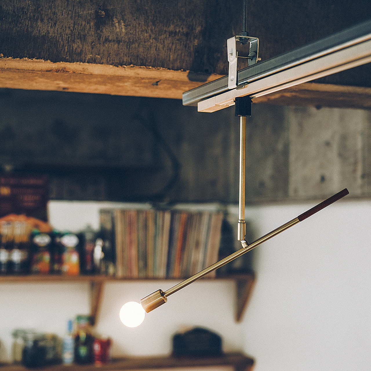 ミニマルなシルエットと癖のあるデザインで仕上げたダクトレール専用のスマートなランプです。ゴールドに映えるウッドパーツでアクセントをプラスしました。2本の支柱をつないだ、スポットライトとしては変化球タイプのデザイン。削ぎ落されたシルエットなのにアソビゴコロにあふれた存在です。スチール部分をゴールドにしたことで、落ち着きのあるクラシカルなイメージにも対応。支柱の先端にウッドパーツを配してナチュラルなアクセントを加えました。設置はライティングレールにのみ対応しています。角度を調節することでシルエットががらりと変わるので、角度を変えながら複数使いをすればアクセントの効いた天井スタイリングが可能に。そっけなくなりがちなスポットライトもインテリアアイテムとしてコーディネイトをお楽しみいただけます。