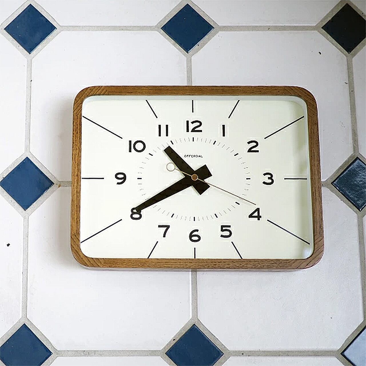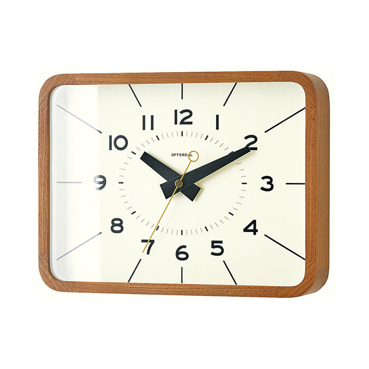 昭和を思い起こさせるレトロな表情の壁掛け時計です。角が落ちたスクエアフォルムとアイボリーカラーの文字盤の組み合わせがぬくもりのある空間を演出してくれます。ボールドなウッドフレームで囲ったスクエアのフォルムが印象的な存在です。上質な木の質感と角の落ちたフォルムがマッチしたインテリアアイテムです。幅広の長針と短針に合わせたのは背の低いフォントの数字と放射状に伸びるインデックス。秒針にはアクセサリーのような華奢なデザインを合わせてユニークなコントラストを演出しました。特徴的なフォントの数字に負けないくらいの存在感を放つ幅広の長針と短針が視認性を高めてくれます。遠くからでも見やすいので、家族が集まる場所にもおすすめです。秒針のコチコチ音が気にならないスイープムーブメントを使用しているので寝室などの静かな場所でも気兼ねなくお使いいただけます。
