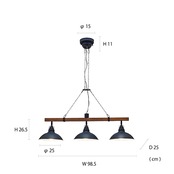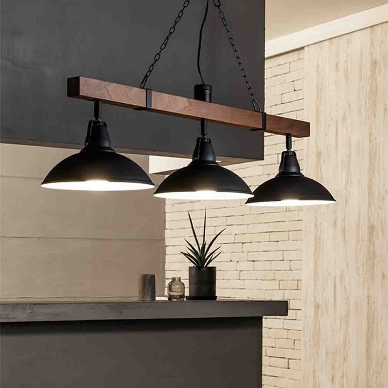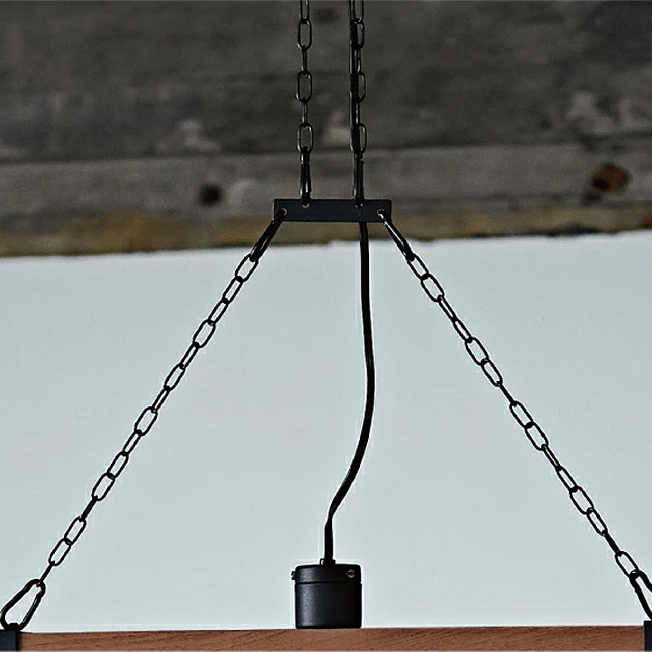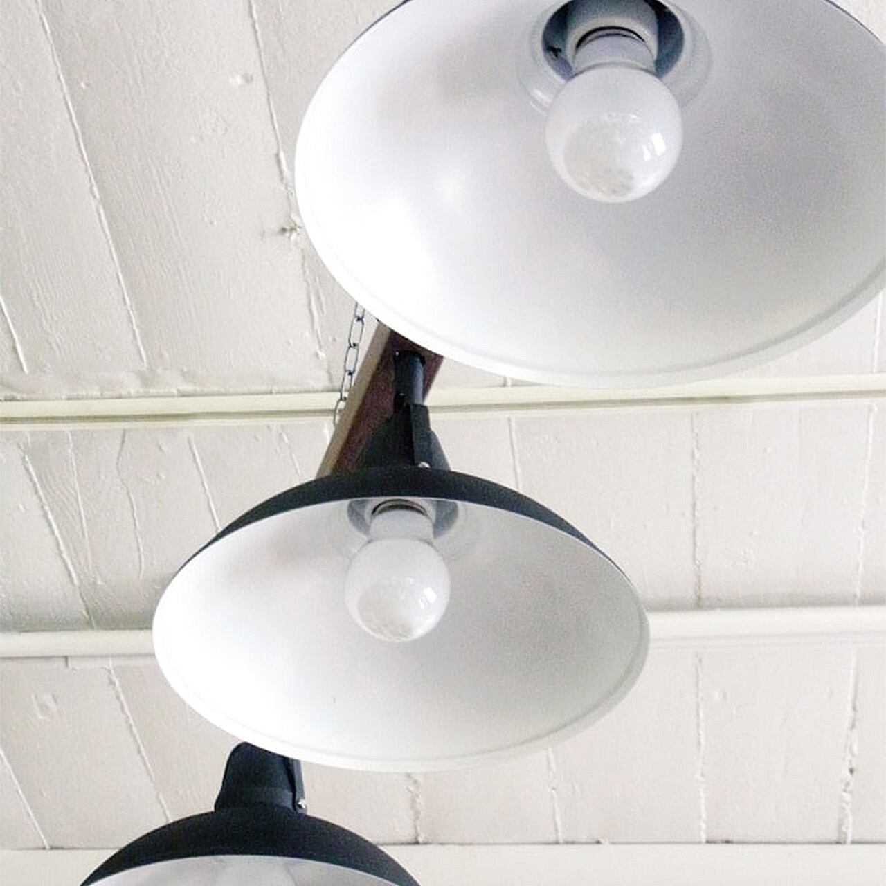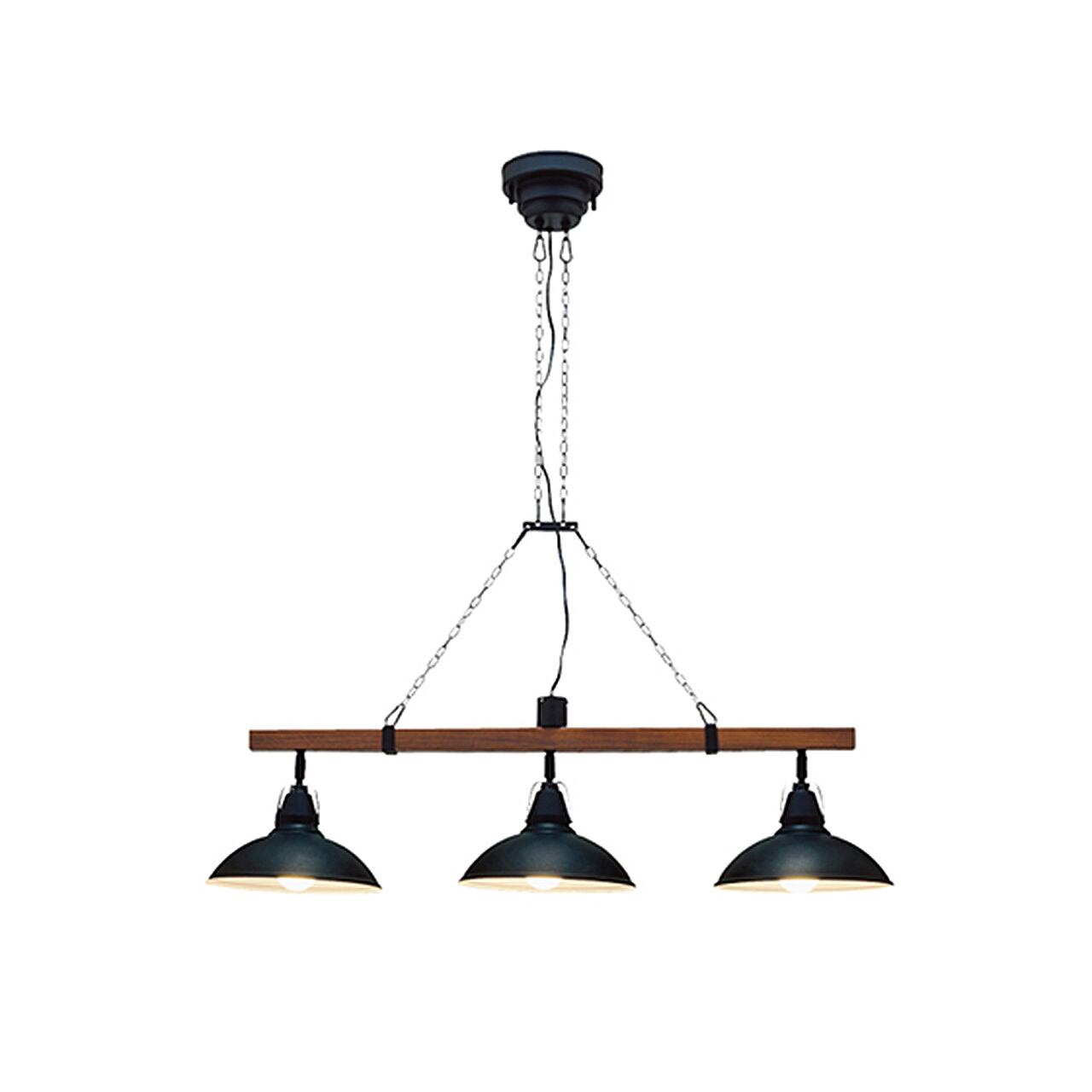 スチール製のセードを3つ並べて、その上に木の支柱を走らせたレトロな印象のペンダントライトです。異素材の組み合わせと人気のカラーコンビネーションがメンズライクな表情を作り出します。少し浅めのスチールセードがシャープなイメージを作ります。マットな仕上げのブラックカラーはクールで落ち着きのある空間を演出してくれます。3つのセードをつなぐ支柱に、木の角材を採用しました。異素材の組み合わせが表情豊かな佇まいを見せます。4本のチェーンが無骨でハンサムな表情を高めます。高さの調節もこのチェーンで行います。天井に近づけて広範囲を照らしたり、長めに調節してペンダントライトとして使用したりと、お好みの高さに調節が可能です。余分なコードはシーリングカップの中にスッキリと収納できます。メンズライクなファクトリーテイストから、ナチュラルシックなコーディネイトまで幅広く合わせていただけます。
