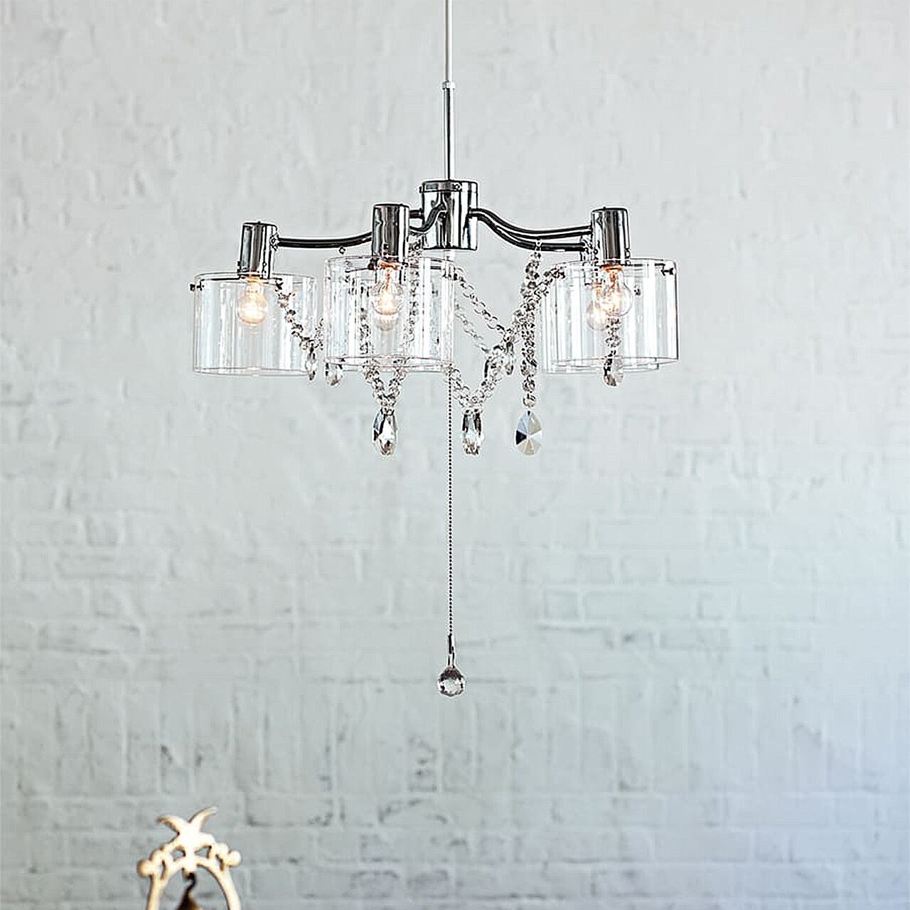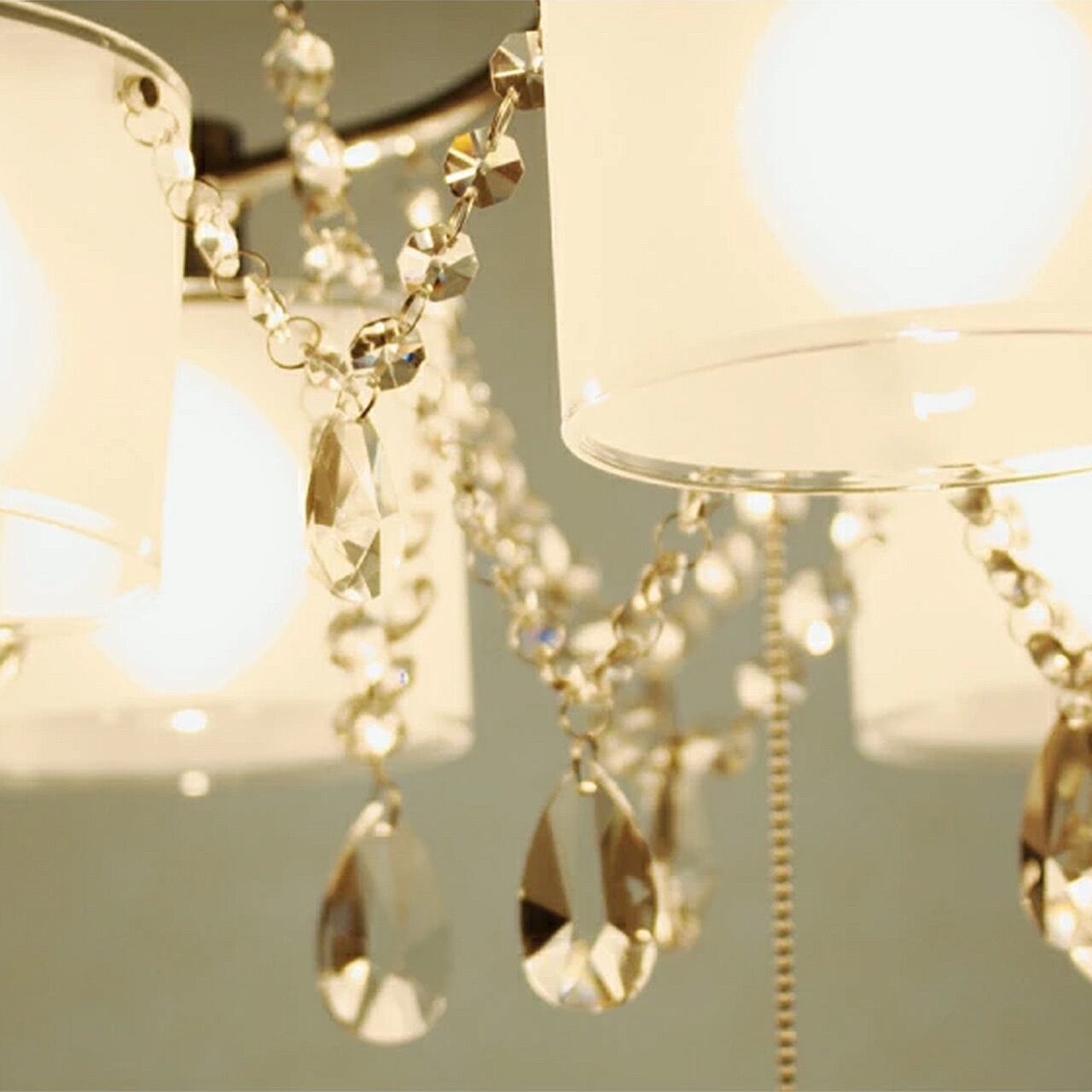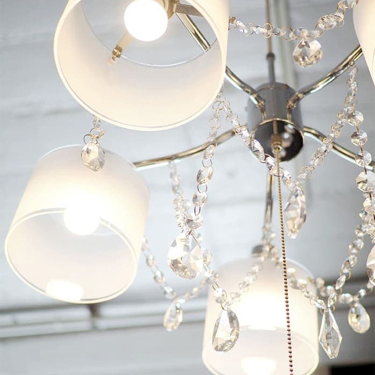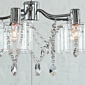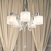まるで幾重にも重なるネックレスをまとったようなゴージャス感が魅力の現代風シャンデリア。シンプルさの中に輝く、洗練されたモダンな仕上がりが魅力です。光源を隠してくれるフロストガラスと、透明感が目を惹くクリアガラスの2種類からお選びいただけます。従来のシャンデリアとは一線を画す、モダンテイストなデザインが魅力です。ありそうでなかったシンプルゴージャスな装いのライトです。ガラスセードの間を行き来するように配置されたクリスタルガラスの装飾が、電球の灯りを乱反射させて、ゴージャスなキラキラを生み出します。5つの電球にガラスセードをかぶせることで、ボリューム感がプラスされ、一層モダンで華やかな印象に。派手になり過ぎないので、サロンやショップにもおすすめのデザインです。できるだけシンプルにまとめた本体と、キラキラと光るクリスタルガラスの装飾の対比に目を奪われる、美しいたたずまいです。華やかさのある空間づくりにおすすめのペンダントライトです。余分なコードはシーリングカップの中にスッキリと収納できます。