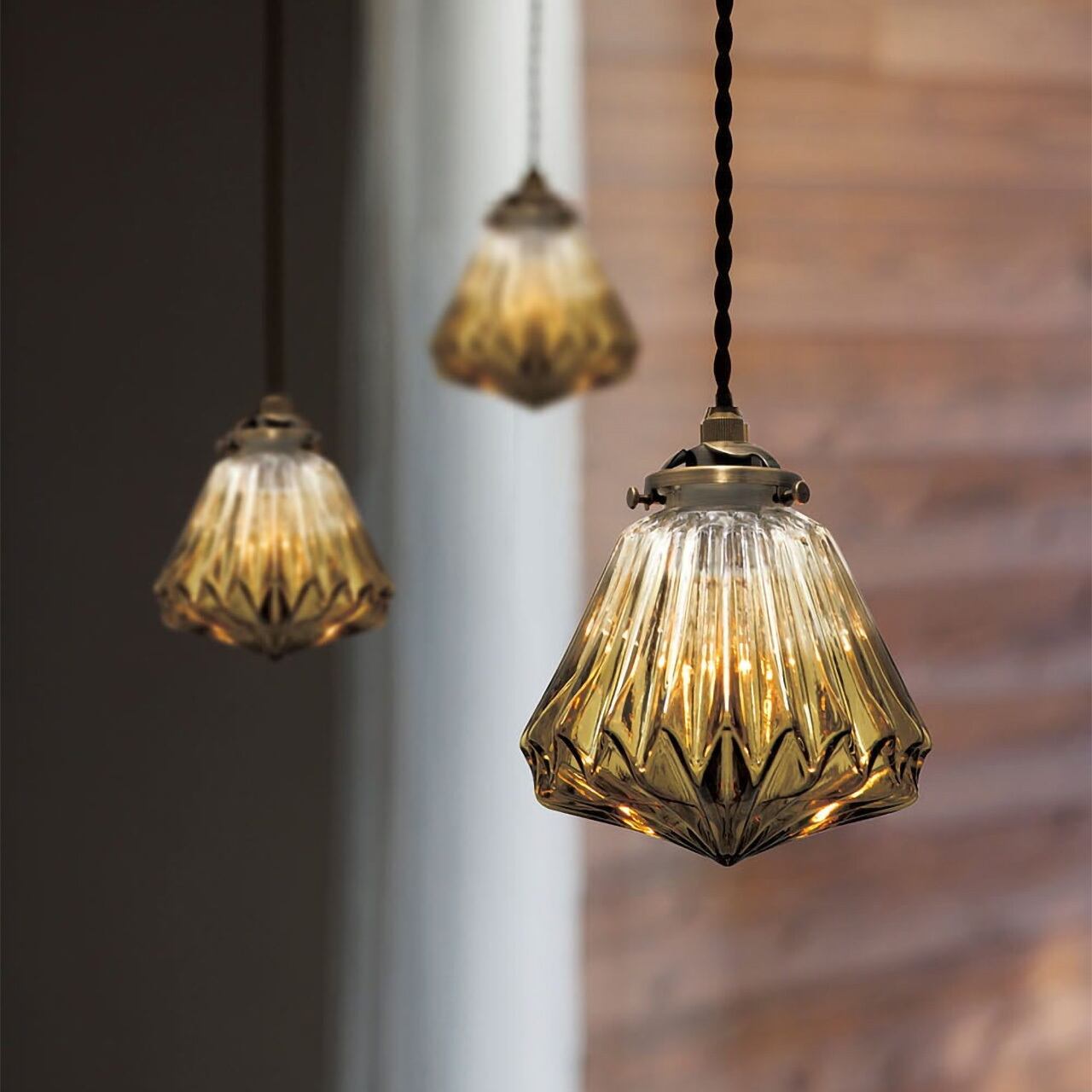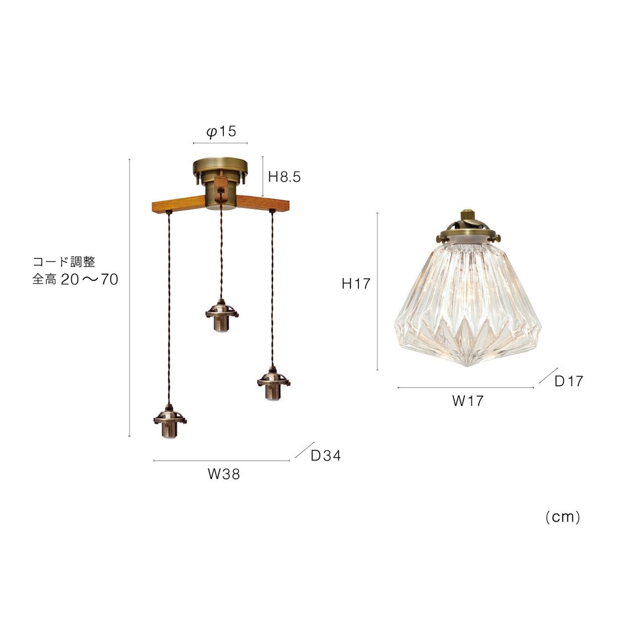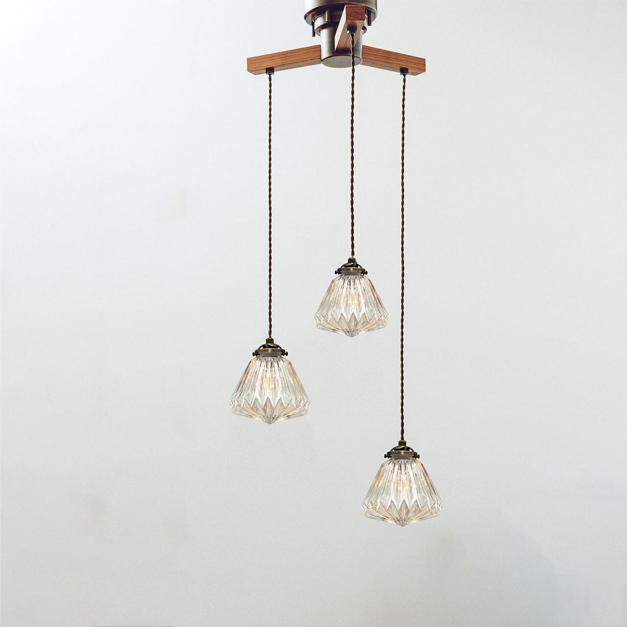 レトロで趣きある人気のガラスセードを使った、ひとつで複数吊りをお楽しみいただけるペンダントライト。どこか懐かしさを感じられるウッドアームを組み合わせたナチュラルなルックスです。ガラスのヒダが光の屈折を生み、美しく輝き壁面にもその陰影を映し出します。独立してコード長の調整ができるので高さの差を付けたりとデザイナブルな演出も可能です。