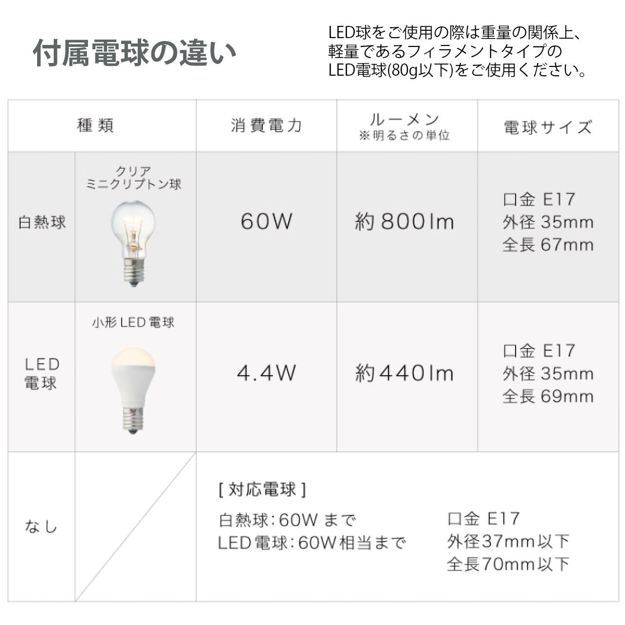 ■付属電球:LED電球: E17/40W相当 小型LED電球(電球色)×3