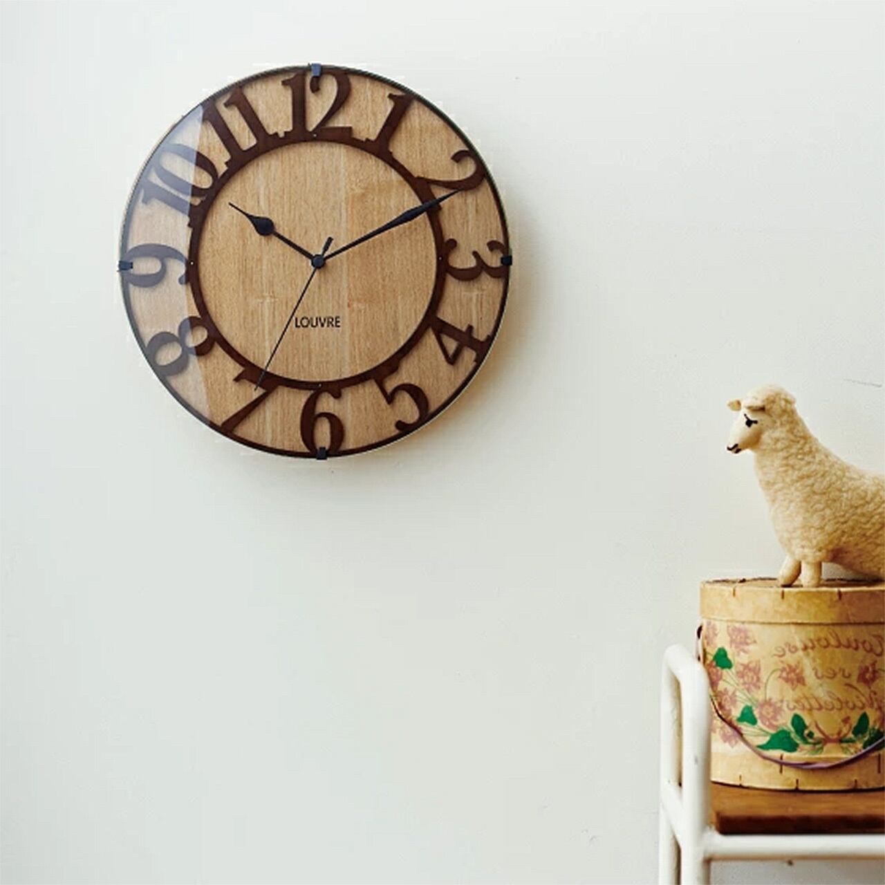 しっかりとした中に安らぎを感じられるナチュラルでシンプルなデザインの壁掛け時計。木目のやさしさとシックなトーンでクリアな見易さを実現したロングライフデザイン。はっきりと見やすい数字部分はレザーカットで切り出した別の木を重ねて、立体感を持たせました。ダークブラウンの独立パーツが文字盤の木目を引き立てます。毎日目にするものだから飽きの来ないデザインを。温かみを忘れない場所にはナチュラルな印象のものを。人が集まる場所に飾りたいそんなシンプルデザインです。時刻合わせが不要で正確な時刻を表示する人気の電波時計仕様なので贈り物としてもおすすめです。ナチュラルでアットホームな雰囲気は様々なシーンに合わせてお楽しみいただけます。