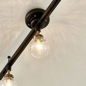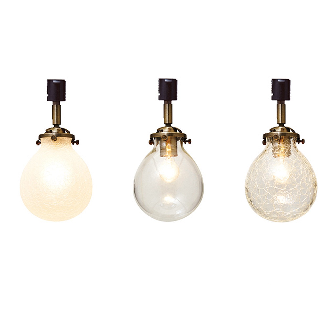 ペンダントライトで人気のガラスセードが、ダクトレールライトになりました。コンパクトでなサイズは、玄関やパウダールームなど幅広い用途でお使いいただけます。天井でしずくが浮かんでいるようなレトロで愛らしいデザイン。ハンドメイドのガラスセードから光が広がり、天井へと伸びる影がムードたっぷりなダクトレールライトです。厚めに仕上げたガラスセードたちは形や大きさに微妙なばらつきがあり、ハンドメイドならでは風合いをお楽しみいただけます。ガラスセードは手のひらで包めるほどのコンパクトサイズです。アンティークゴールドのソケットがレトロなムードを漂わせます。ソケットの角度を変えて、お好きな方向に光を届けることができます。キッチンやダイニングスペースのダクトレールに複数取り付けると、お部屋がパッと華やぎます。さまざまな空間に馴染むシンプルなデザインは、カフェやショップにもおすすめです。