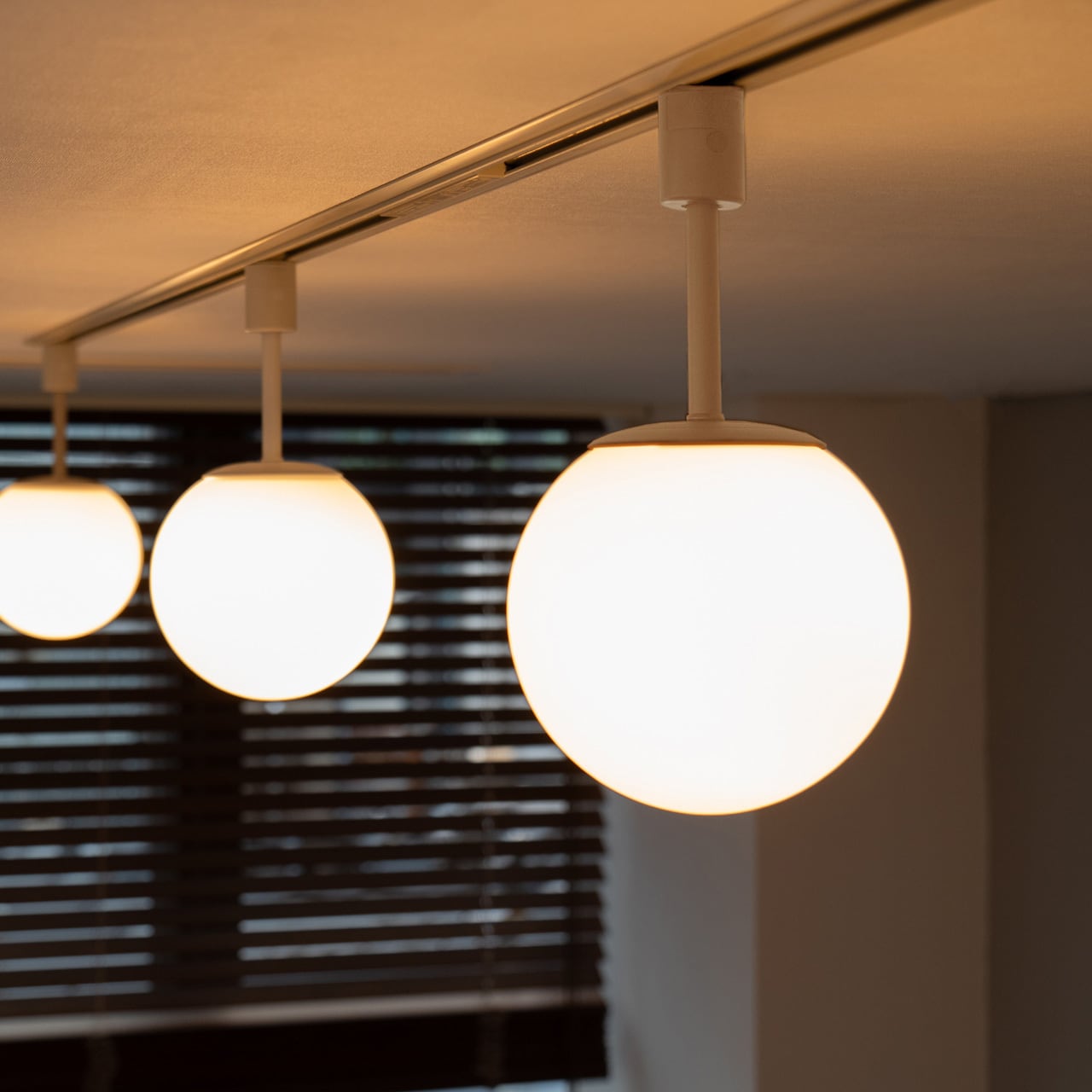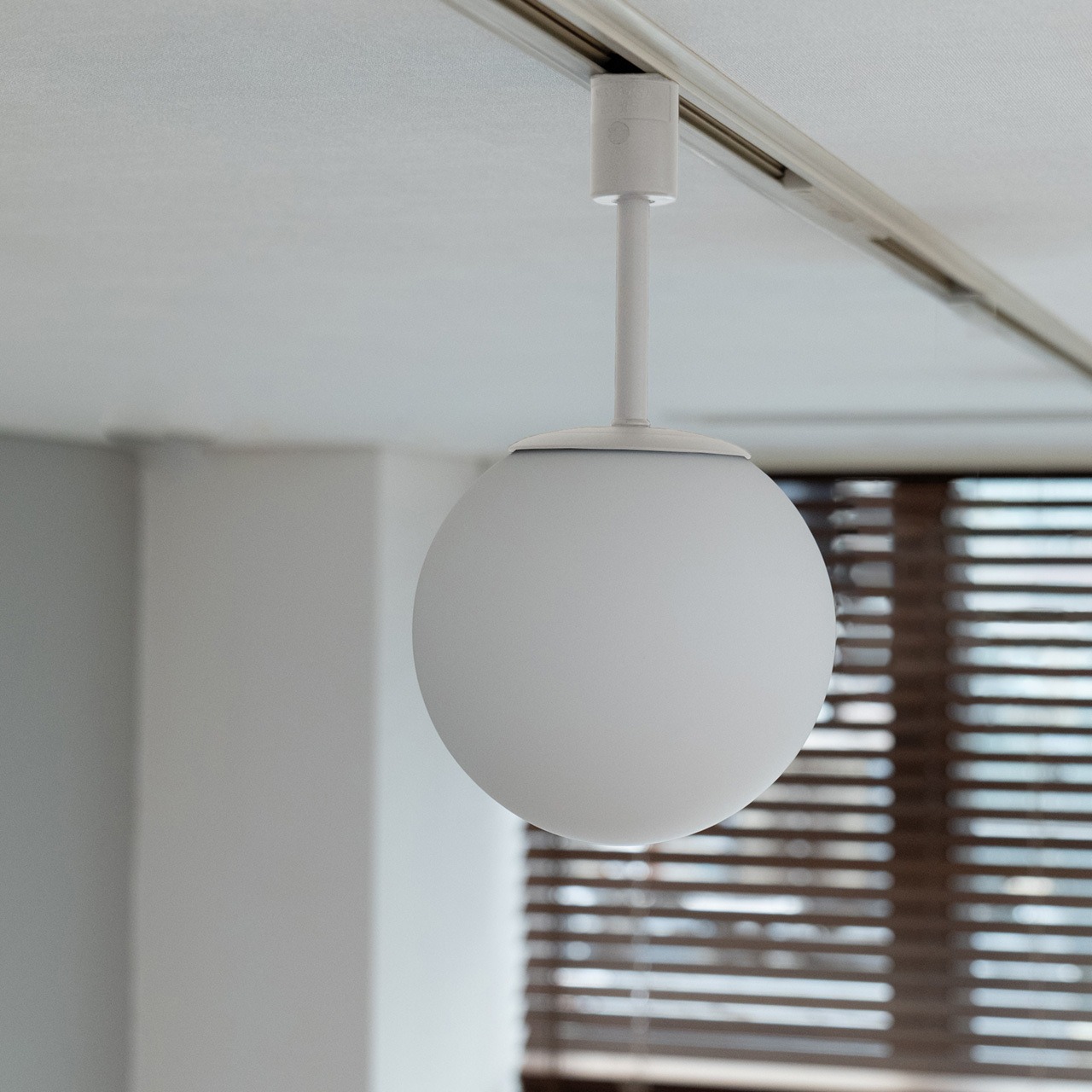 日本の住宅に馴染むサイズと、飽きのこないスタンダードデザイン。 天井のダクトレール(ライティングレール)専用のガラスボール照明です。レール上を自由に移動できるため、家具のレイアウト変更にも柔軟に対応。乳白ガラスを通した柔らかな光は、複数並べても眩しさを抑え、空間をムラなく穏やかに包み込みます。単体でダクトレールファンと組み合わせるのはもちろん、いくつか並べる「多灯使い」なら、ご自宅がまるでカフェのような洗練された空間に生まれ変わります。