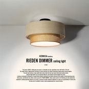 人気のリーデン2シーリングランプの調光調色タイプ(LEDユニット内蔵)が登場。リーデンシリーズは自然素材の美しさと、洗練された北欧デザインが静かに響き合う照明。外側には上質なファブリックシェード、内側には繊細な編み込みを施したバンブープラスチックを重ね、光に奥行きと豊かな表情を与えます。灯りをともすと、柔らかな陰影が空間に広がり、まるで北欧の穏やかな暮らしを映し出すかのような佇まいに。無駄を削ぎ落としたフォルムは天井に自然と溶け込み、リビングやダイニング、ベッドルームを上質で落ち着いた空間へと導きます。「RIEDEN DIMMER」はリモコン操作にてLEDの調光調色を変更でき、シーンや用途に合わせてお楽しみいただけます。明るさは最大で12畳程度まで対応します。本体カラーは、濃い色の家具にも合わせやすい ウォールナット色をご用意。