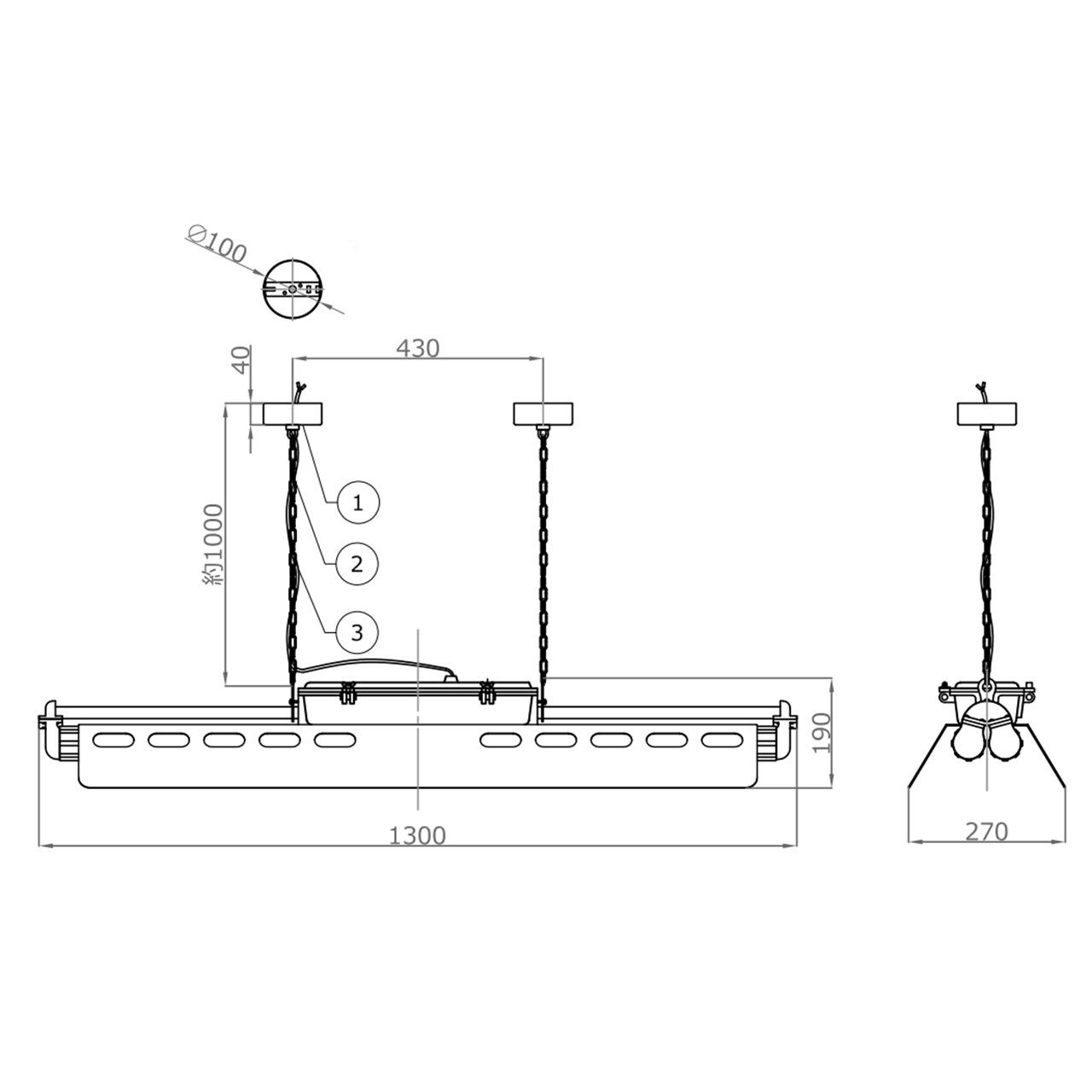 ■サイズ(約):本体:幅1300mm x 奥行き270mm x 高さ190mm / 全高:1190mm / コード長:約 1 m(端末切りっぱなし)