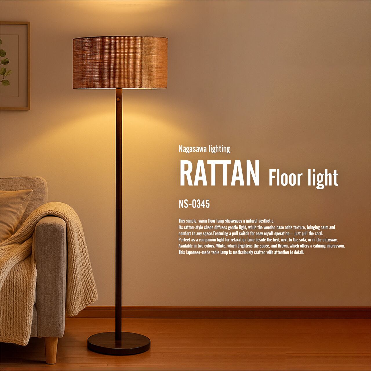 NAGASAWA Lighting 長澤ライティング RATTAN Floor light ラタンフロアライト (LED球付属) NS-0345 / フロアランプ スタンド照明 E26 60W相当×1灯 プルスイッチ 日本製 | UNLIMIT