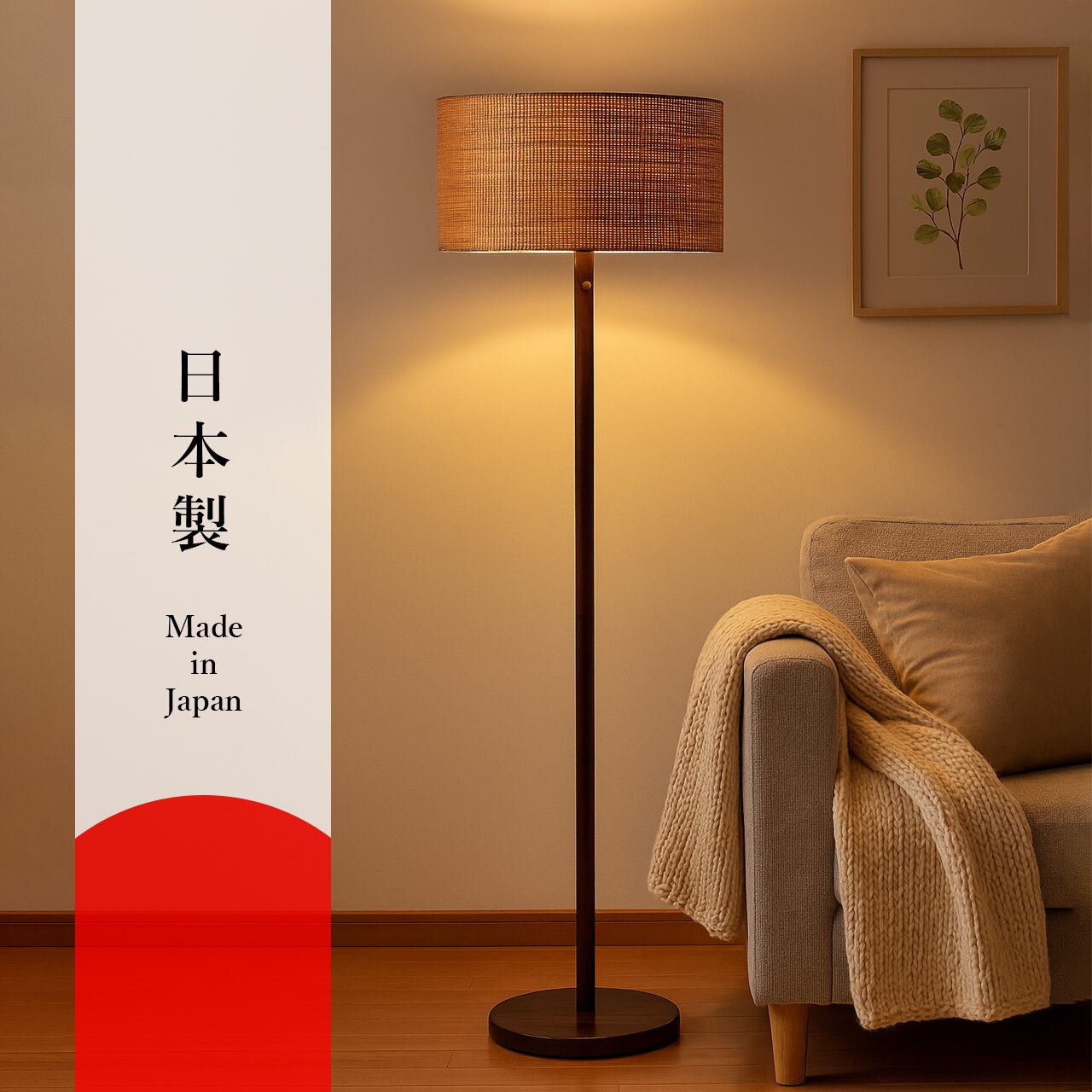 ナチュラルな風合いを活かした、シンプルであたたかみのあるフロアランプです。やさしい光を透過するラタン調シェードと、木の質感を感じられるベースが、空間に落ち着きと心地よさをプラスします。操作はプルスイッチ式で、紐を引くだけの簡単ON/OFF。ベッドサイドやソファ横、エントランスなど、くつろぎの時間に寄り添う照明として最適です。カラーは、空間を明るく見せるホワイトと、落ち着いた印象のブラウンの2色展開。細部まで丁寧に仕上げた日本製のテーブルライトです。
