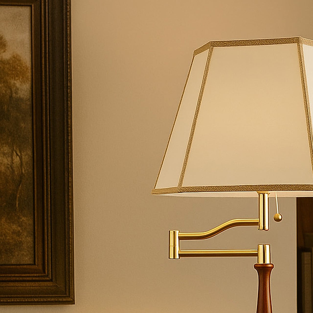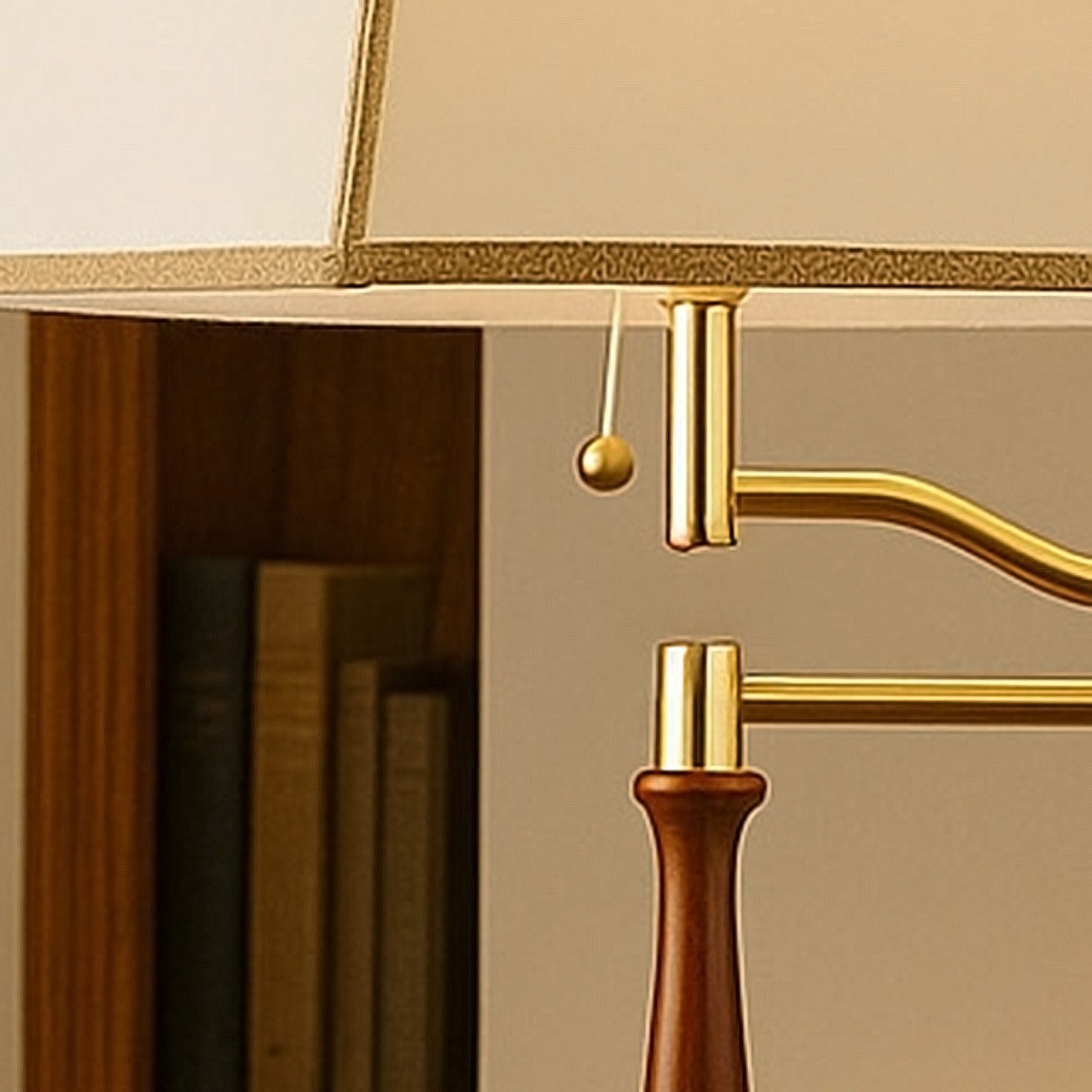 オイルパーチと呼ばれるオイル加工を施した特殊紙を使用。レザーのような質感は品のある高級感を纏った調度品のよう。内部の電球からシェードを通して味わい深い光が広がります。トラディショナルなデザインで落ち着いた雰囲気の中、ソファーサイド、ベッドサイドなどの穏やかな時間を演出します。支柱は可動式アームを備えており、手元を照らしたい時などにシェードの位置を変更することができます。スイッチはプルタイプを採用し、点灯→ナツメ→消灯と切り替えが可能。その操作にも趣きを感じさせられます。