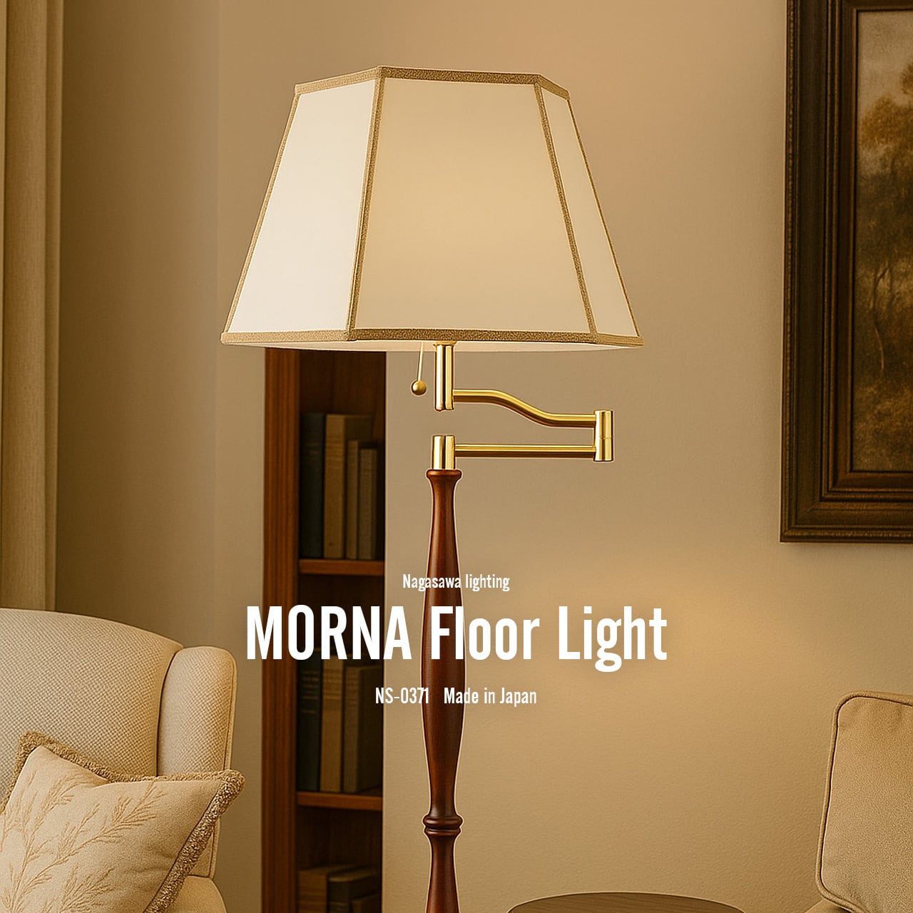 【受注生産:納期目安約2-3週間程度】 NAGASAWA Lighting 長澤ライティング MORNA Floor Light モルナ フロアライト (LED球付属) NS-0371 / フロアランプ スタンド照明 E26 60W相当×1灯 ナツメ球 プルスイッチ オイルパーチ ホテルライク 日本製