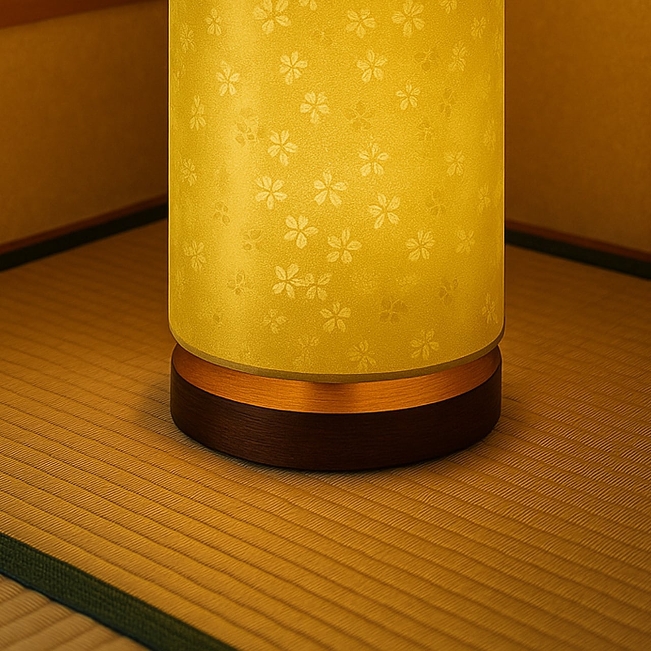 美しい桜の和柄を纏った行燈のようなスタンドライト。消灯時には品格ある雰囲気のシェードが美しく目を惹き、点灯時にはぼんやりと透け、テグラデーションになる様は日本の様式美を感じさせます。土台部分には木をあしらい和柄とのコントラストを際立たせ、少し隙間が開いていることで漏れ出る光が美しく演出します。お部屋のコーナーやエントランス袖などに設置すると雰囲気抜群。もちろんテーブルライトとしてもご利用いただけます。