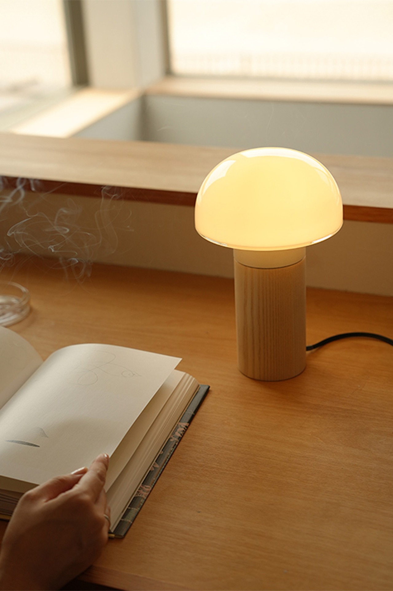 「Joo(ヨー)」シリーズはZelt/柴山修平氏とAXCIS,INC.が共同開発を行ったプロダクトライン。クラシカルさと現代的な雰囲気を併せ持つ照明シリーズです。「Joo stand light 」は、コンパクトで印象的なデザインのテーブルランプ。乳白ガラスシェードが上向きに付いて、穏やかなトーンのあかりが上下左右に広がります。電源コードの途中部分にON/OFFスイッチがあり、手元で点灯/消灯の操作が可能です。ベッドサイドやテーブル、家具の上などにおすすめです。また、転倒の懸念がおありの場合は、本体底裏面に仕込まれマグネットと、設置場所固定する専用パーツを組み合わせれば、磁石により転倒を防止することができます。