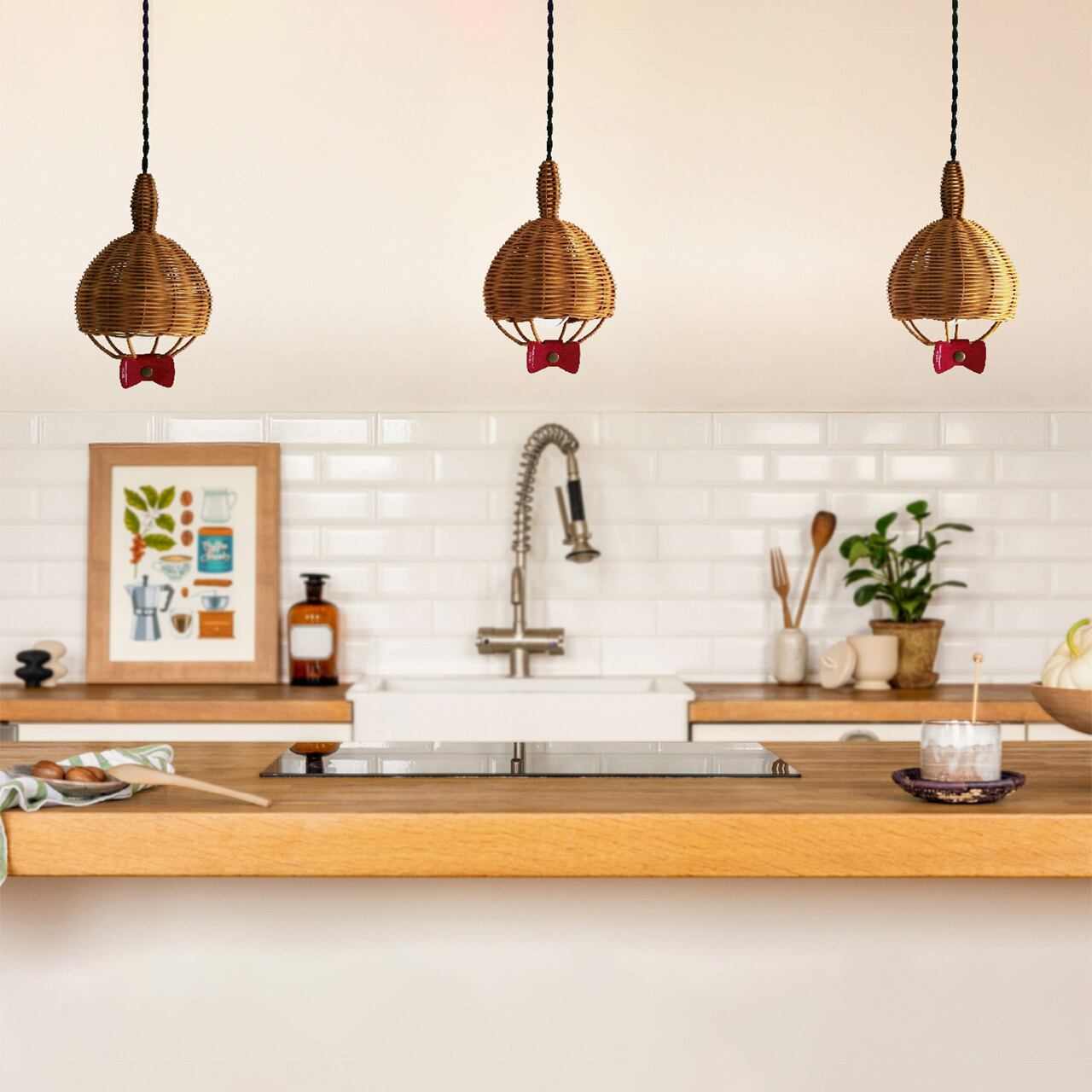ムーミンの大人気キャラクター「リトルミイ」をイメージしたペンダントランプをデザインしました。ラタンで編み込んだリトルミイのおだんご頭をイメージ。真っ赤なリボンがアクセントになっています。リボンは取り外しても使え、シンプルなラタンのペンダントランプとしても使用できます。小ぶりな1灯吊りの照明なので、多灯吊りでもかわいらしく飾っていただけます。「スナフキンの忘れものペンダントランプ」と併せてコーディネートもお楽しみいただけます。