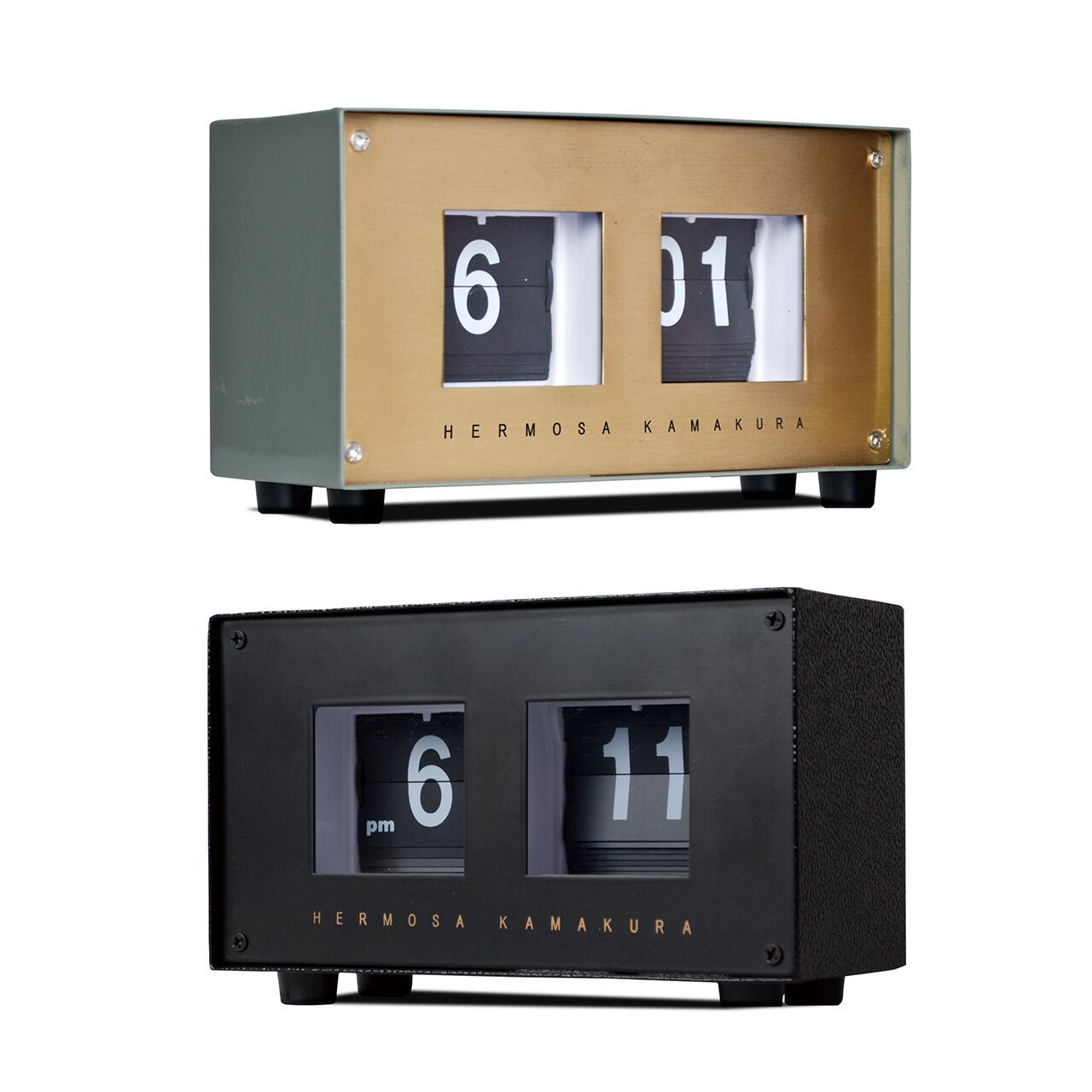 昔懐かしいパタパタクロック。数字がめくれる音も愛着が湧きます。無骨なデザインも今ではかえって目新しくも思われます。ウッドフレームに加えスチール仕様を2色追加。真鍮プレートとロゴがアクセントとなり絵になる存在感を醸し出します。