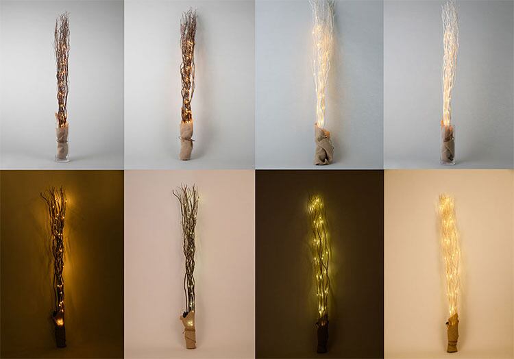天然木の折り重なる枝の合間からこぼれるLEDの幻想的な光。天然木の重なり合う枝の隙間から枝の束を幻想的に浮き立たせるLED電飾。フラワーベースや傘立てなどと合わせてエントランスや寝室、リビングの飾りに。LEDライトは8パターンの切り替えが可能なので、その日の気分に応じて演出が可能。また、日中もライトを点灯していなくても天然木のデザイナブルな意匠が癒しを与えてくれます。フラワーベースや傘立てなどと合わせてエントランスや寝室、リビングの飾りに。気分やお部屋の雰囲気に合わせて、切り替えてお楽しみいただけます。天然木のカラーはホワイトとブラウンをご用意。ライトを点灯していなくても天然木がお部屋にあるだけで癒しを与えてくれます。 ■電源 単三電池 × 3本(電池別売) ■作動時間 約 100 時間(使用電池により異なります。) ■動作温度 -10℃〜35℃ ※環境によりご使用いただけない場合があります。 ■機能 防水電源BOX、8パターン+消灯、自動ON,OFFタイマー、100時間点灯 ■定格寿命 40,000h ■ご注意 ※水の中や雨(水)がかかる場所ではご使用不可