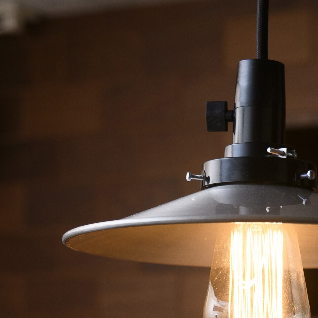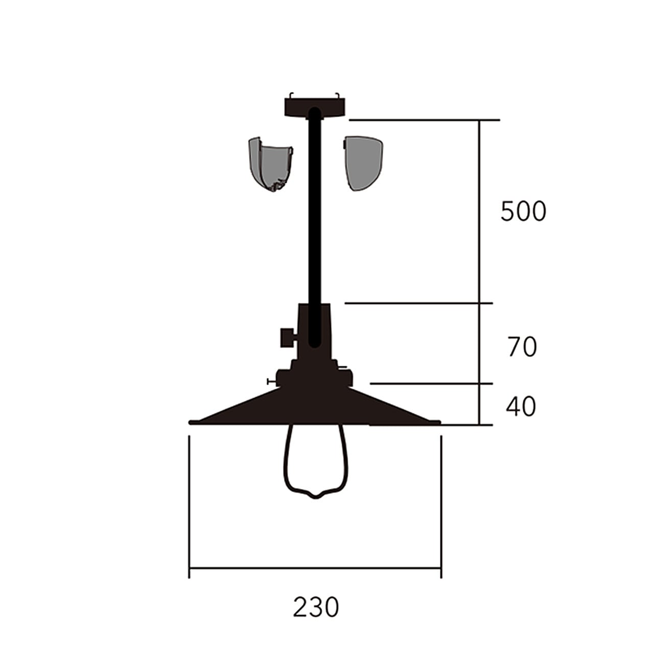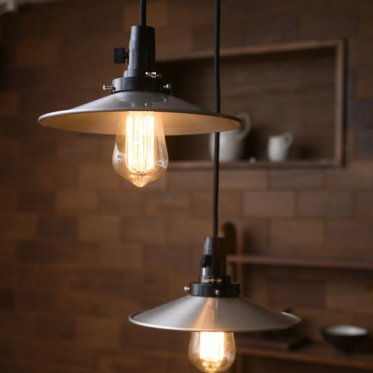 素材感が光る武骨なアルミ製シェード。シンプルなシェードのため武骨さが際立ちます。壁面スイッチ以外に、灯具自体でロータリースイッチによるON/OFFが可能。アナログな動作がレトロ感を演出。狭小スペースはもちろん、ダイニング、キッチンカウンター、店舗照明など、ライティングレールを使用して多灯吊りも雰囲気抜群。