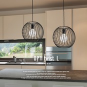 モダンな雰囲気で人気のOPTI twistにLサイズが登場。スチールワイヤーを組み上げて、その名の通りねじり形状に仕上げたコンテンポラリーな雰囲気のペンダント。ワイヤーの織りなす幾何学なビジュアルと佇まいは空間を格段にレベルアップ。クリアタイプの電球を使用すればワイヤーシェードの影が壁面に投影され幻想的な雰囲気に。デザインの特性上、洋室だけでなく和モダンテイストの空間にも馴染みます。