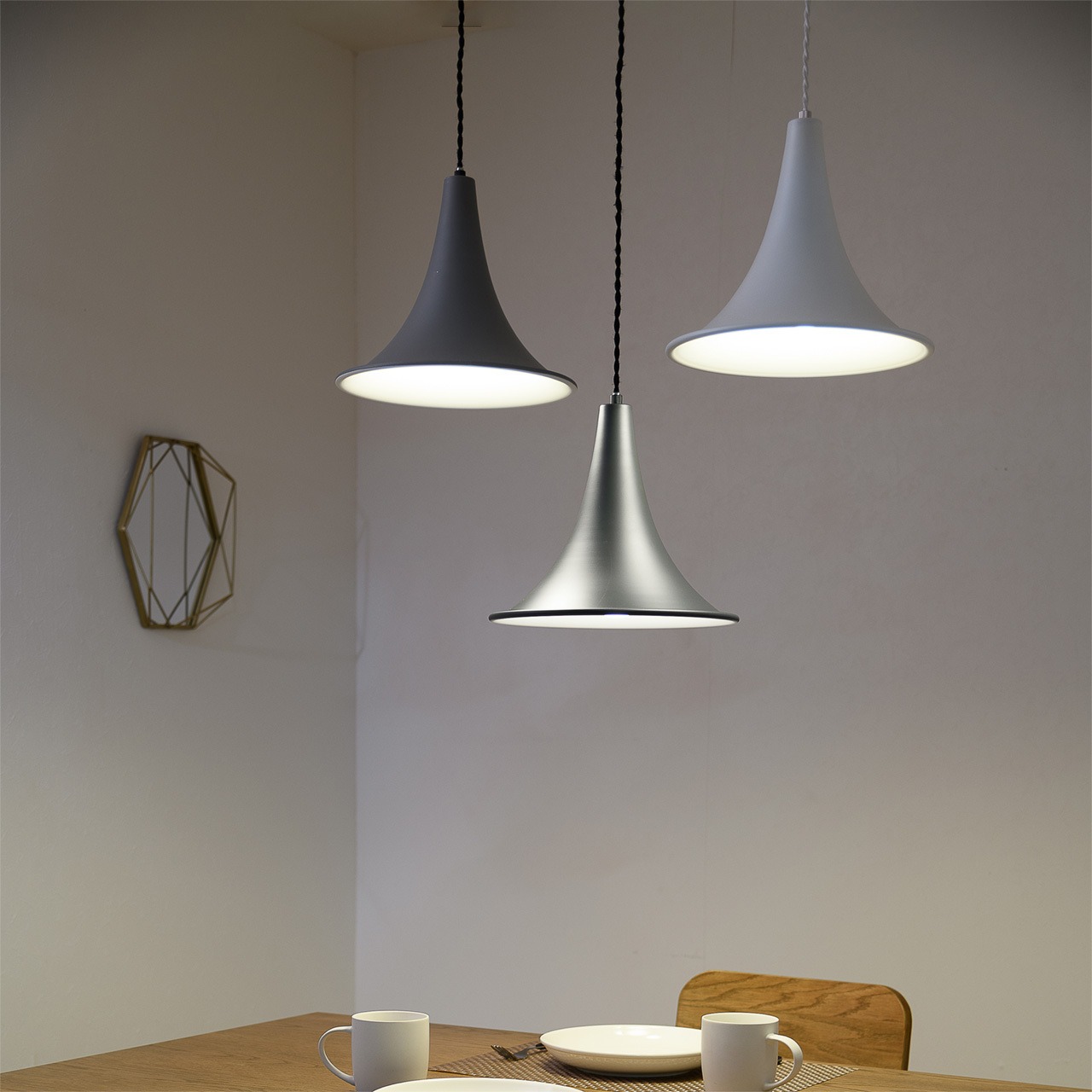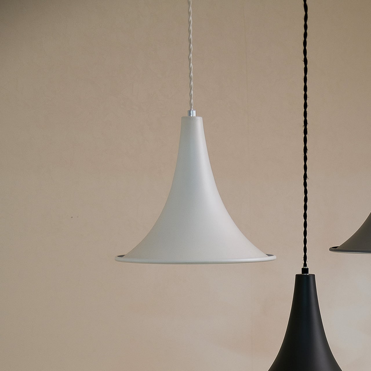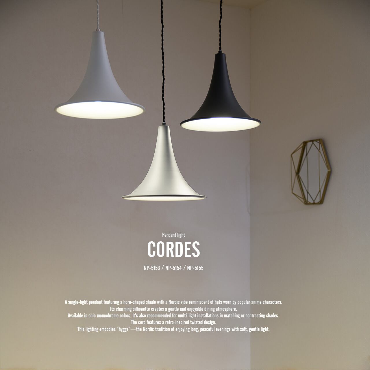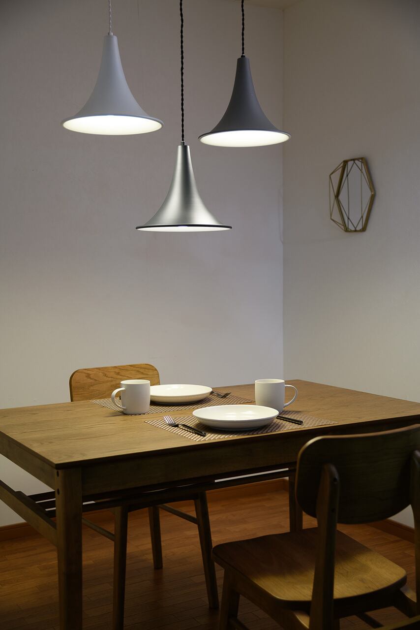 人気アニメのキャラクターの被る帽子のような北欧の雰囲気漂うホーン型のシェードを備えた1灯ペンダント。趣きあるシルエットで穏やかで楽しい食事の時間を演出します。シックでモノトーンなカラー展開で、同色や色違いで多灯吊りもおすすめ。コードにはレトロな雰囲気のあるツイストコードを採用。北欧で夜長の穏やかな時間を柔やかな明りで楽しむ時間「ヒュッゲ」を体現する照明です。