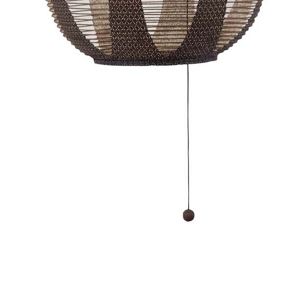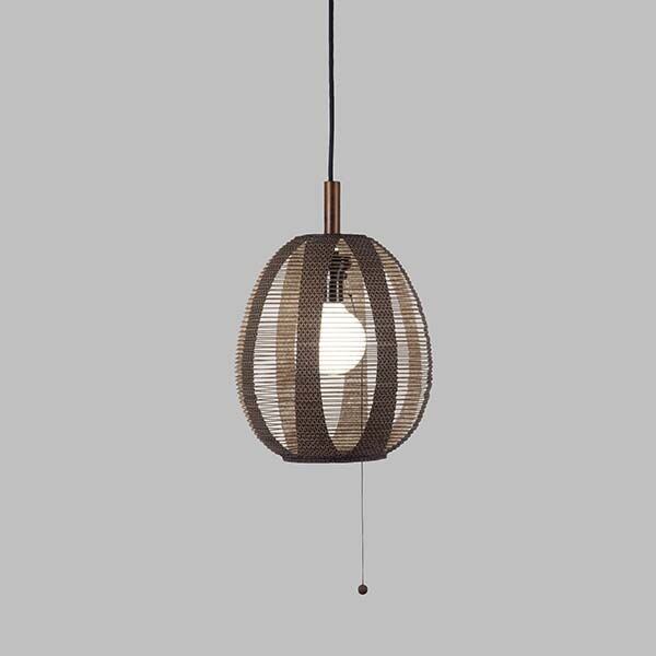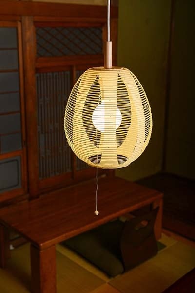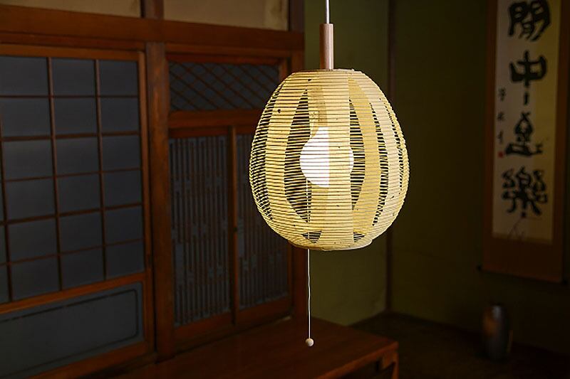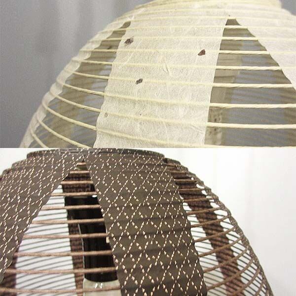 提灯を模した風情あるペンダントライト。上質な和紙を使用し、熟練の職人の手によるハンドメイドは提灯そのもの。たまご形のシルエットにスリットを入れ、和紙を通した光と隙間から漏れる光をミックスさせた趣きある逸品。ホワイトは伝統的な和紙の原料でクワ科の落葉低木「楮(こうぞ)」を使用した和紙を使用、ブラウンは和柄模様を施した和紙を使用。どちらもそれらを透かした風情ある灯りと空間を演出します。プルスイッチ装備で灯具側でもON/OFFが可能。