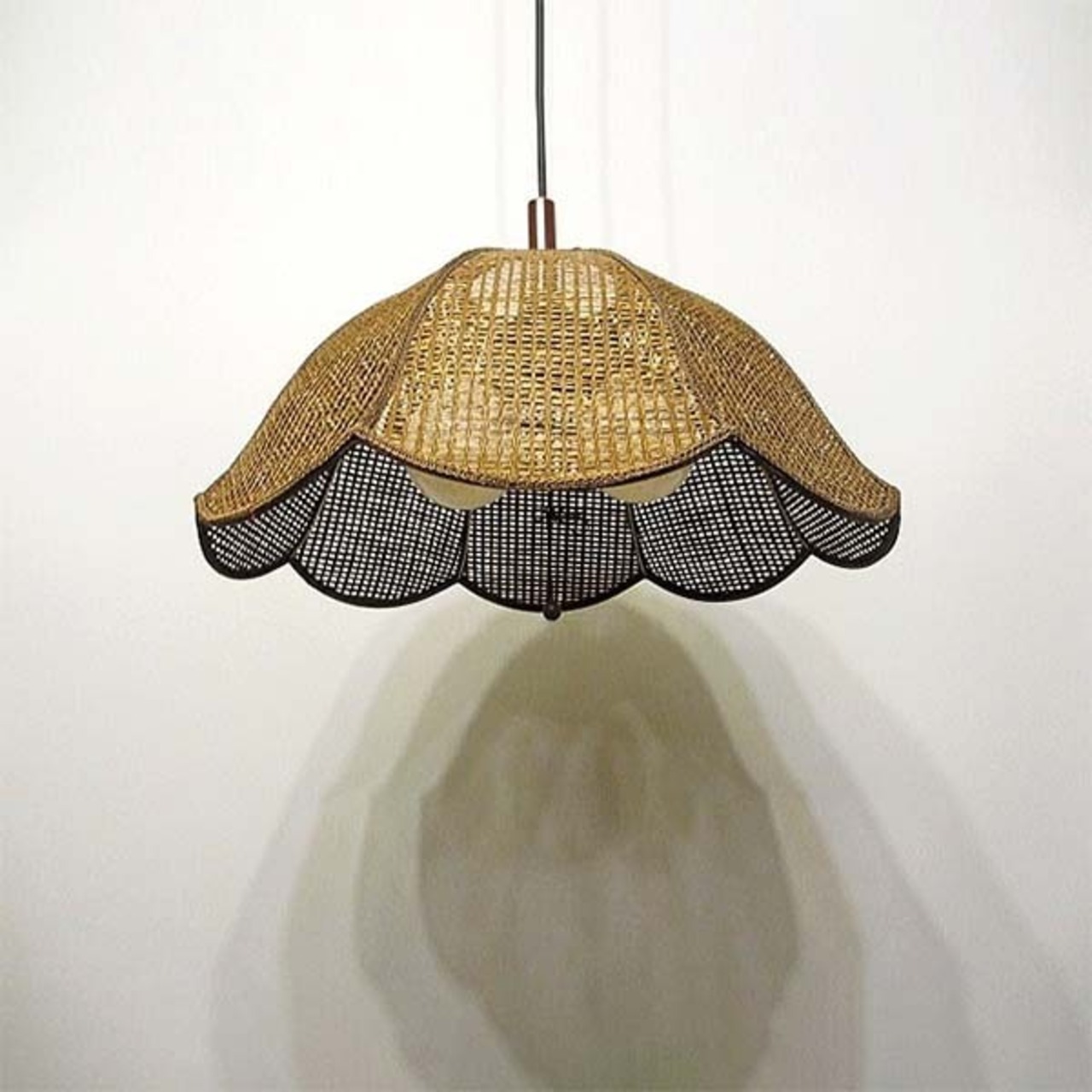 特殊紙ウィッカーであしらったナポレオンスタイルのペンダントライト。メッシュから漏れる光は柔らかく、穏やかにお部屋を演出します。トラディショナルな趣きで和洋いずれにも合わせやすいデザインです。付属の電球はホワイト球ですが、お好み応じてクリア球を使えば壁面に投影される影も美しい。